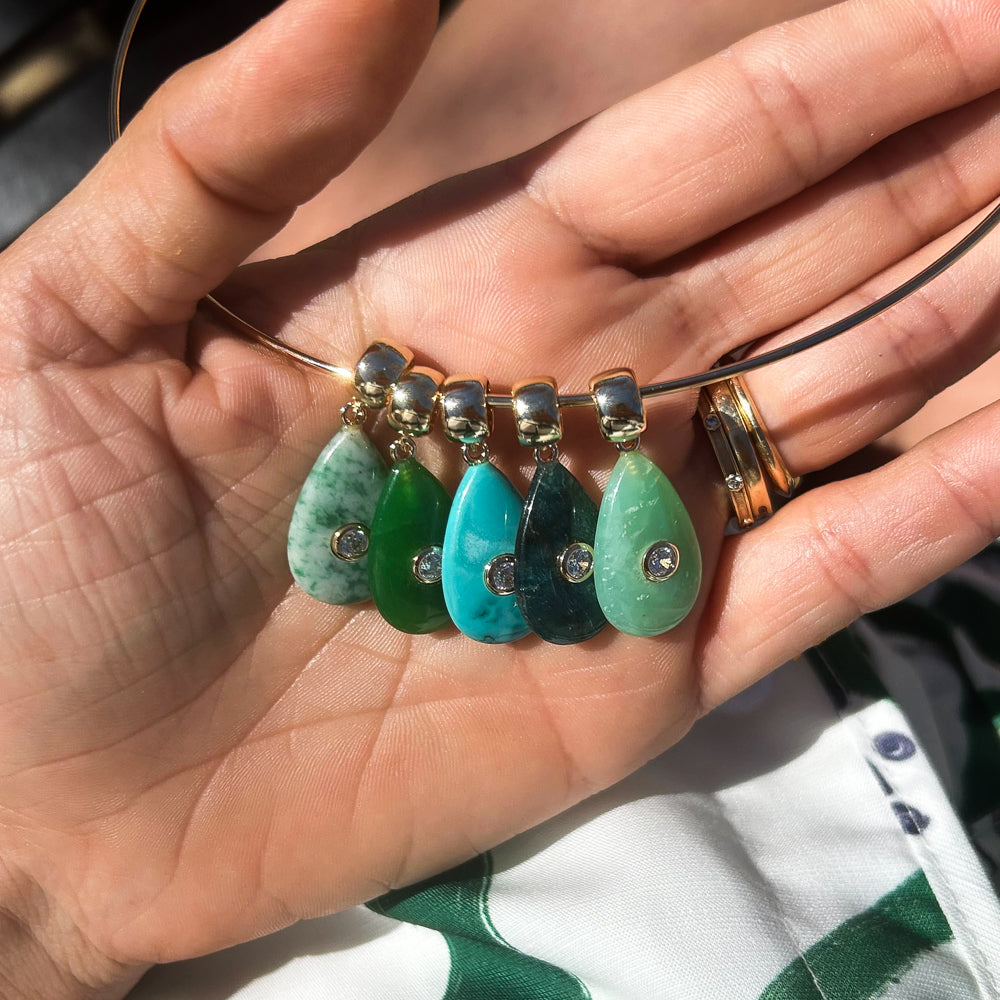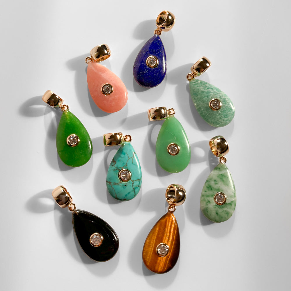 Our first ever teardrop charm, the Bardot adds shape, dimension, and a sleek pop of color to your favorite necklace chain.