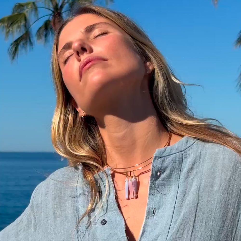 She's a best seller for a reason. Our new favorite hand-carved gemstone fish charm has quickly become the must-have charm of the season. This blue lace agate fish (with a mother of pearl eye!) can be worn alone on our Monet Choker or necklace chains, or layered with your other favorite charms. Our Fortuna isn't just a cute charm, it's a little amulet for good fortune and luck.
