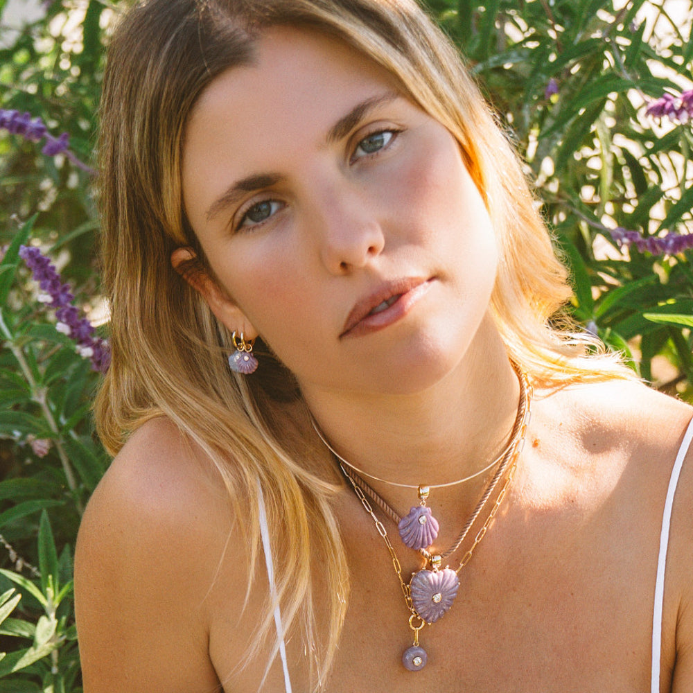Bring a touch of paradise everywhere you go. These delicate hand-carved scallop shells on our Monet Hoop Earrings make everyday a little more special.