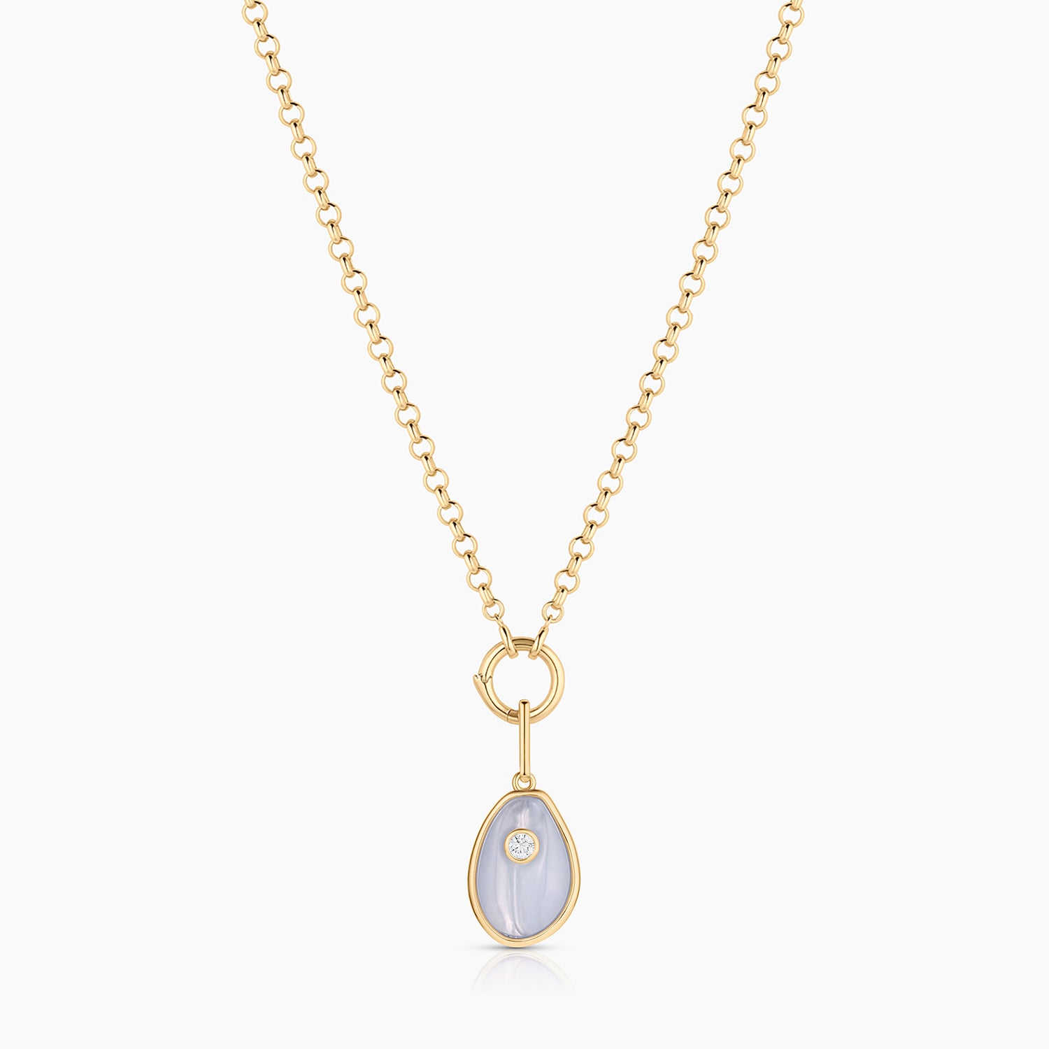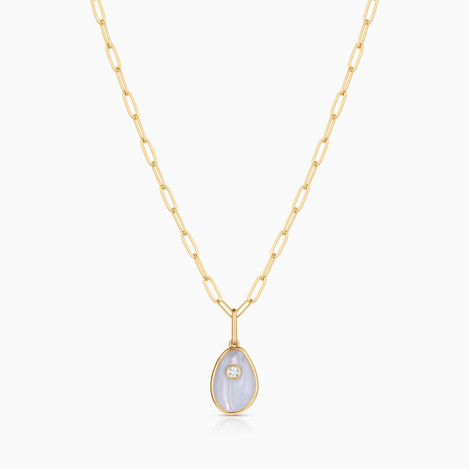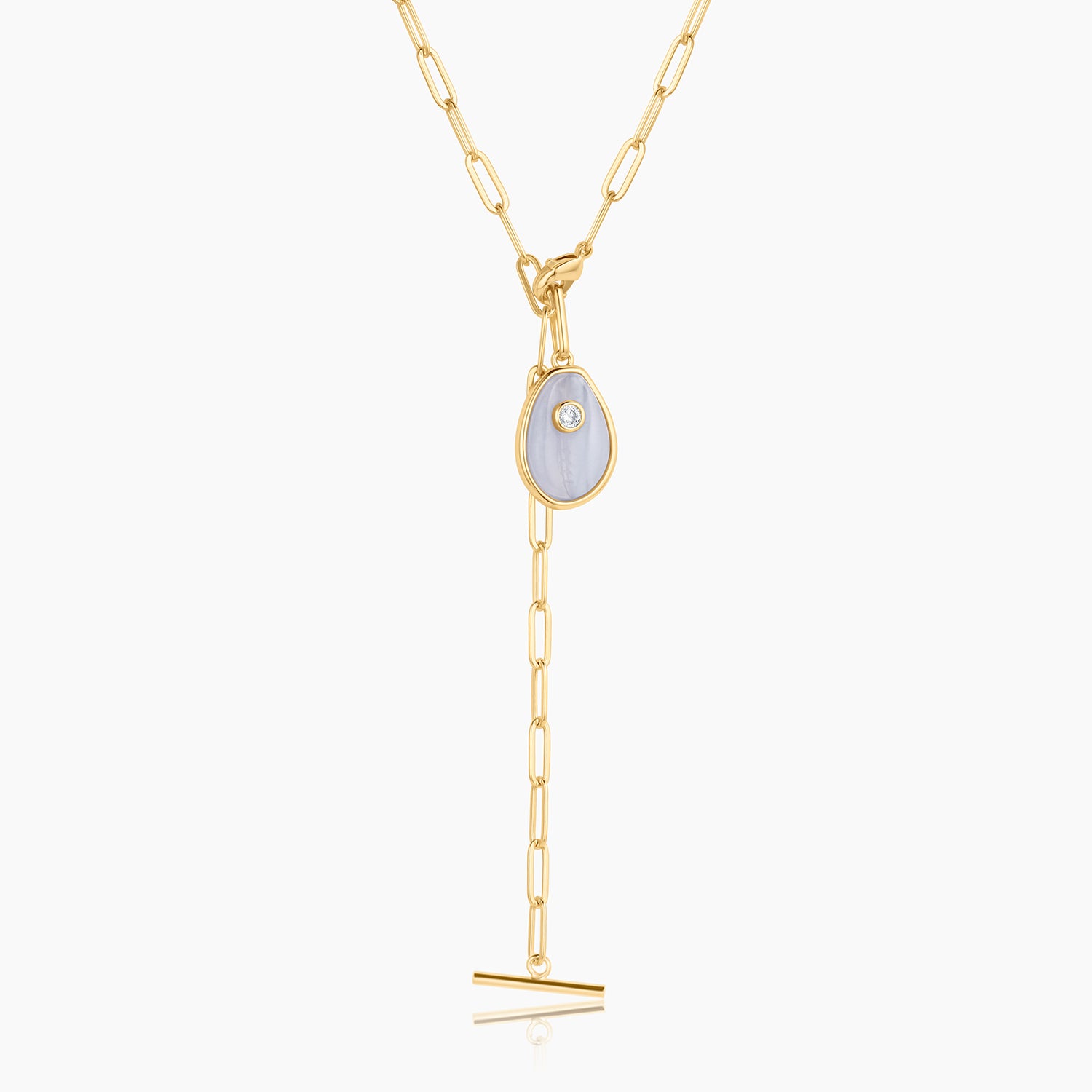 Materials: 14k gold plated, hand-carved blue lace, cubic zirconia