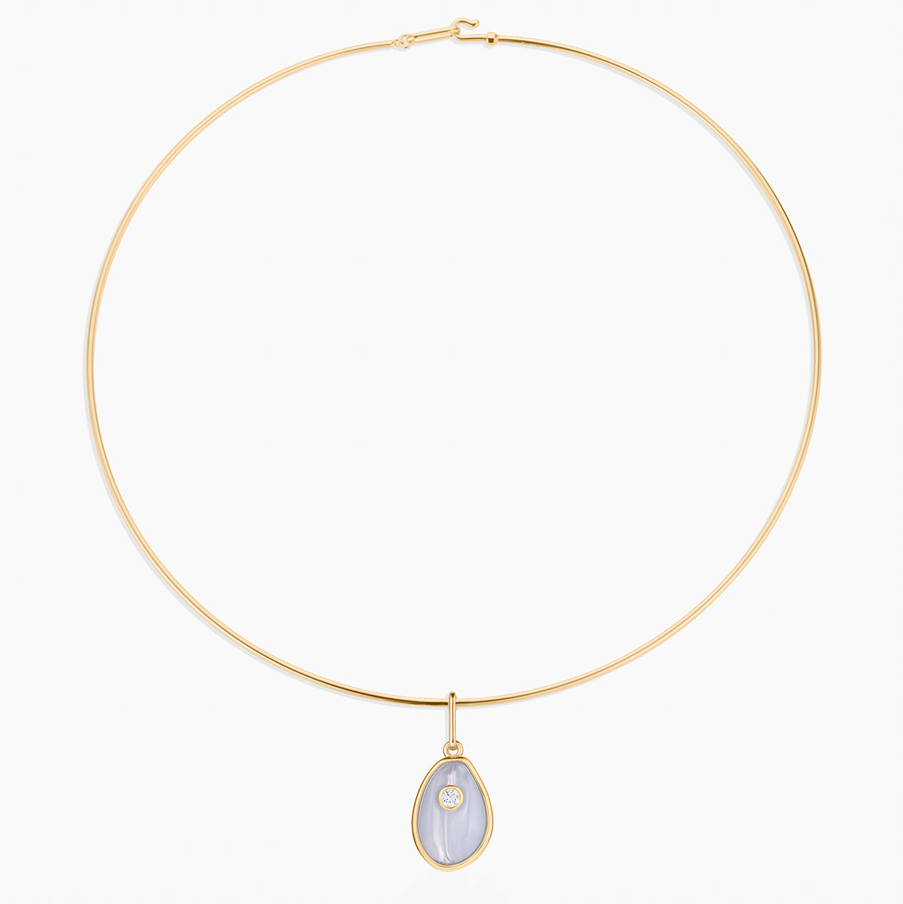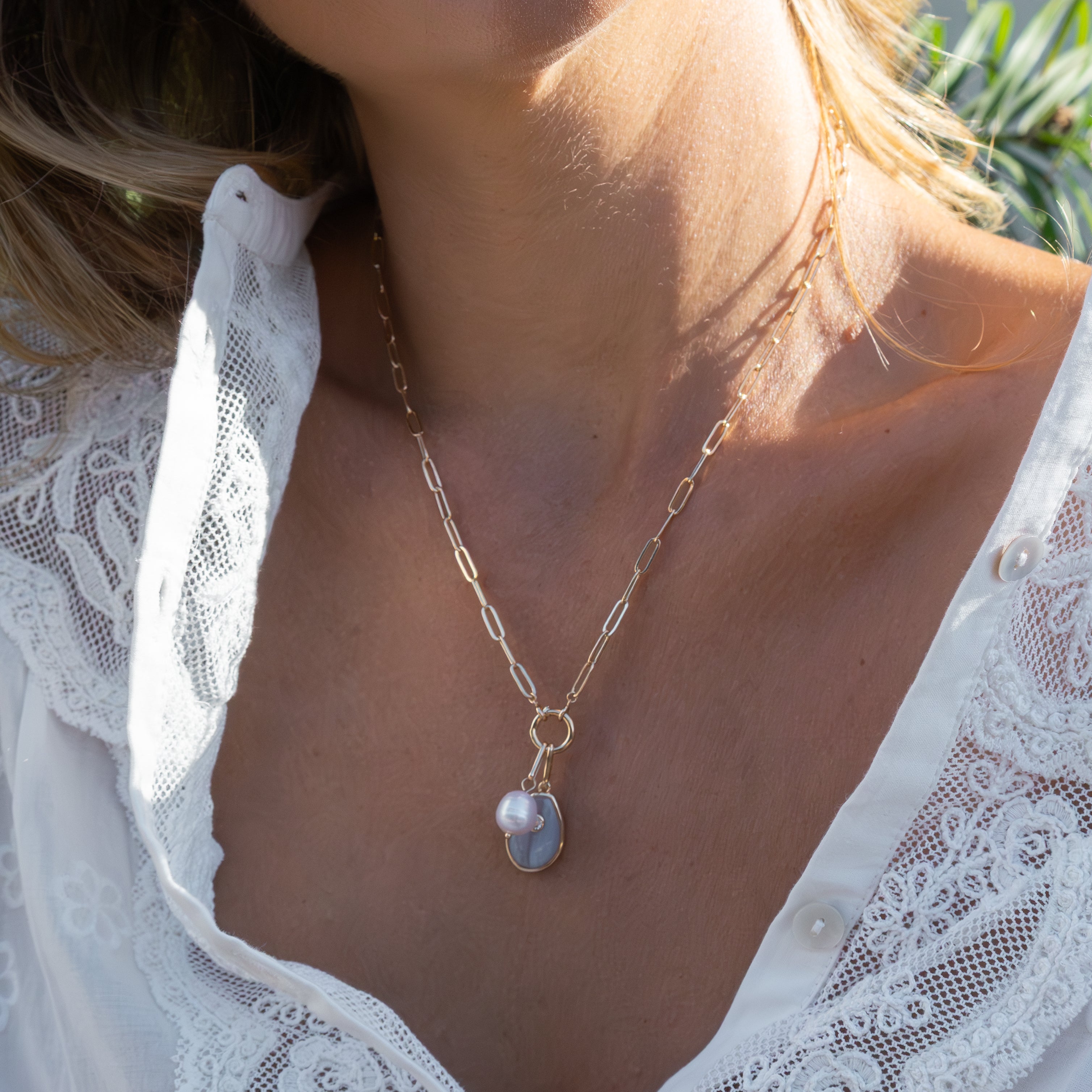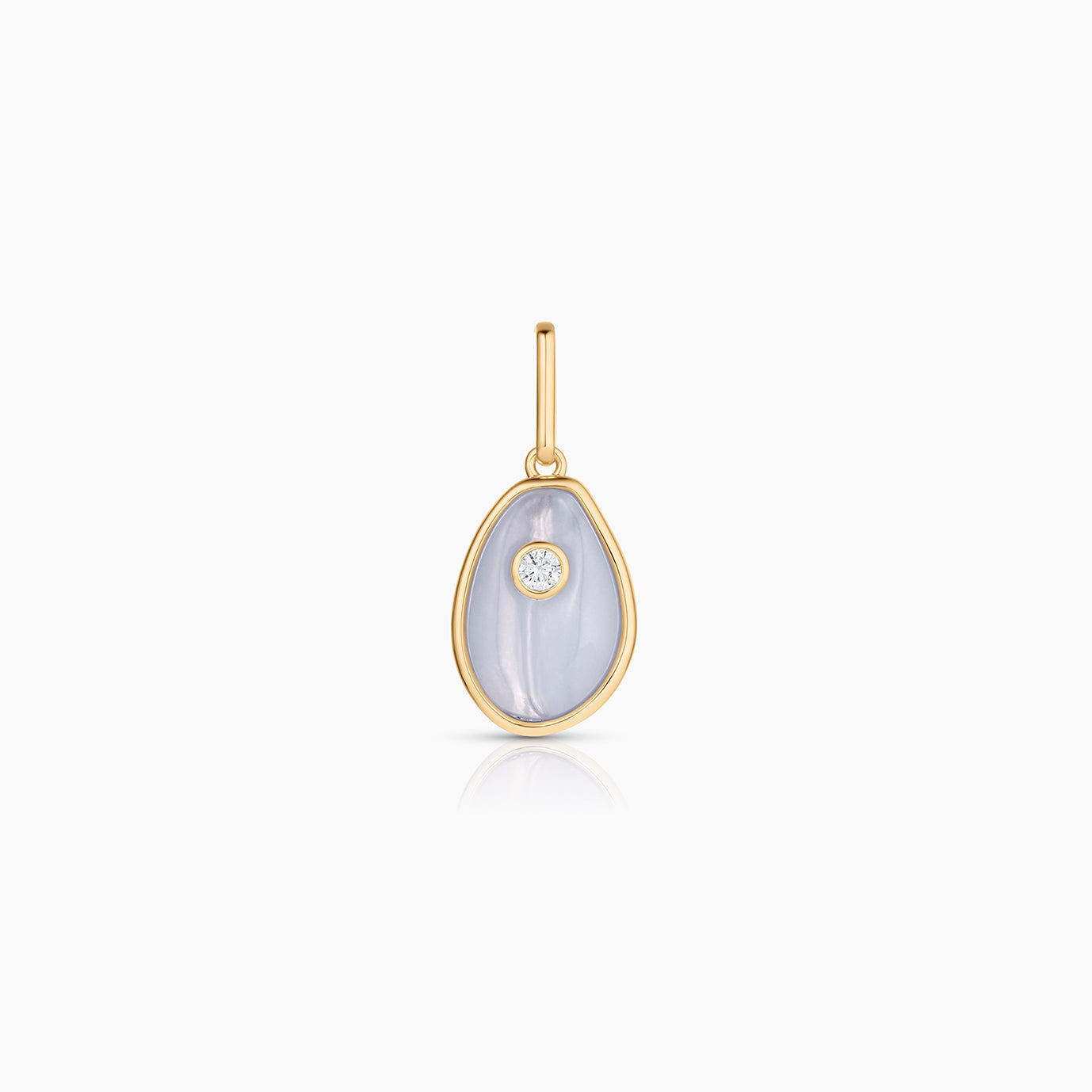 Materials: 14k gold plated, hand-carved blue lace, cubic zirconia