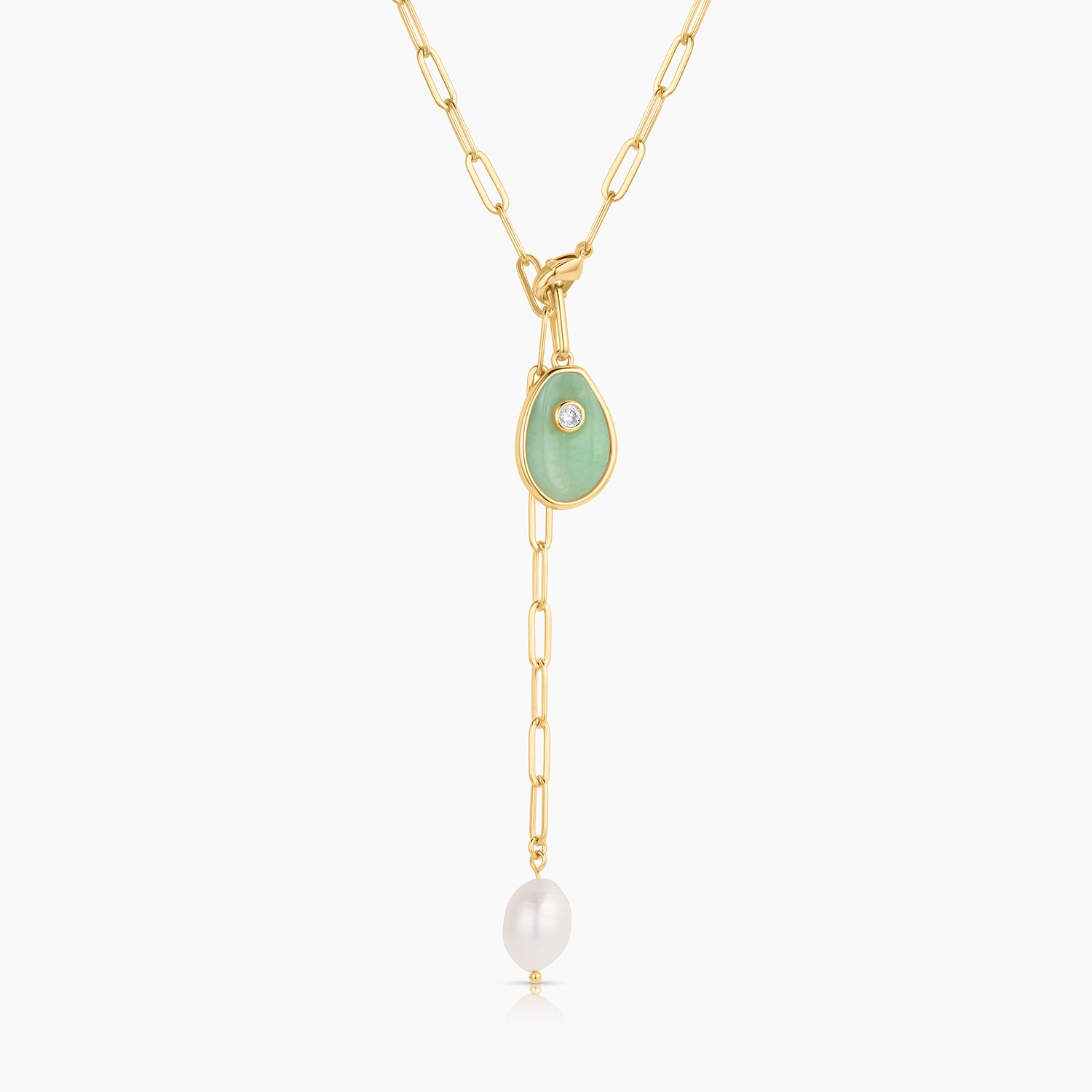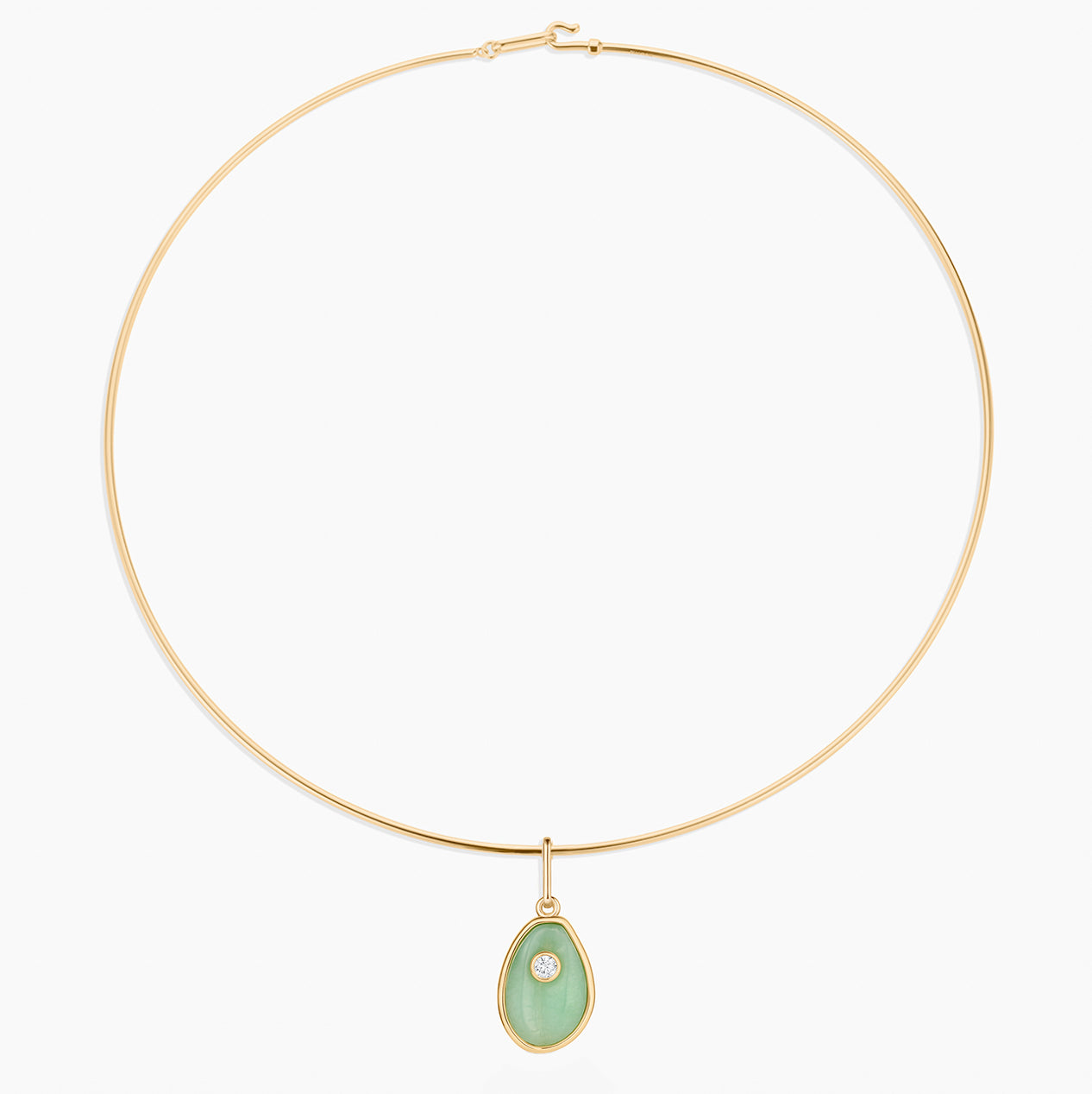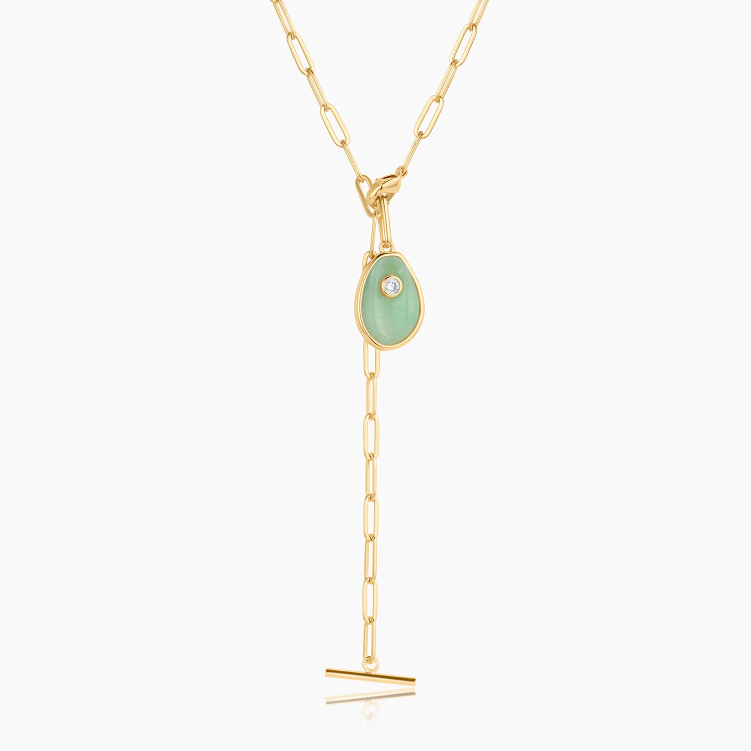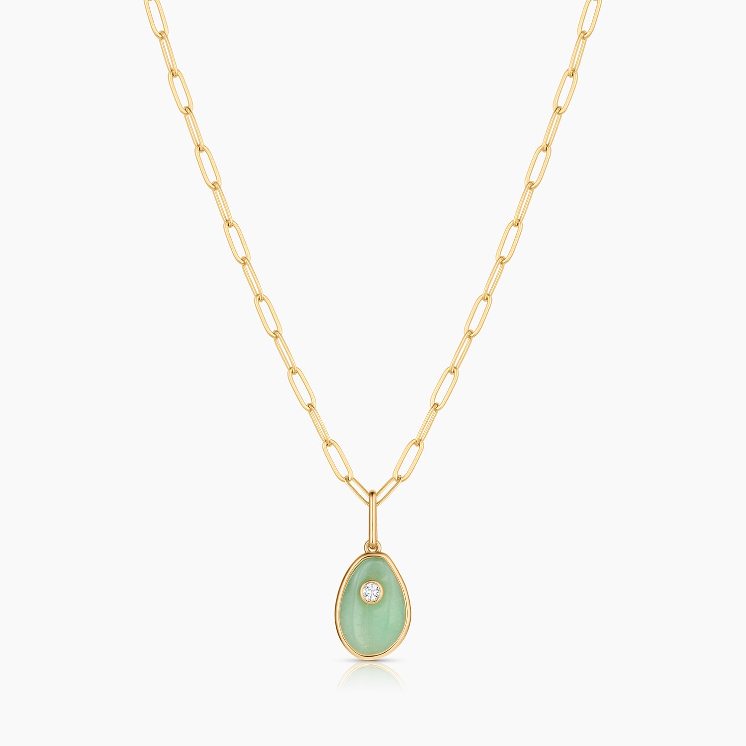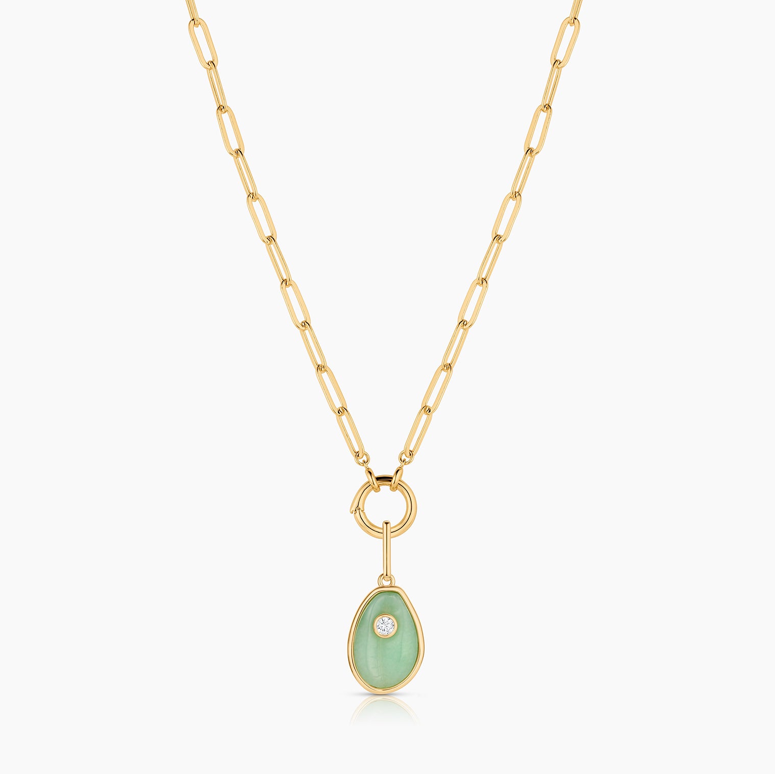 Materials: 14k gold plated, hand-carved chrysoprase, cubic zirconia