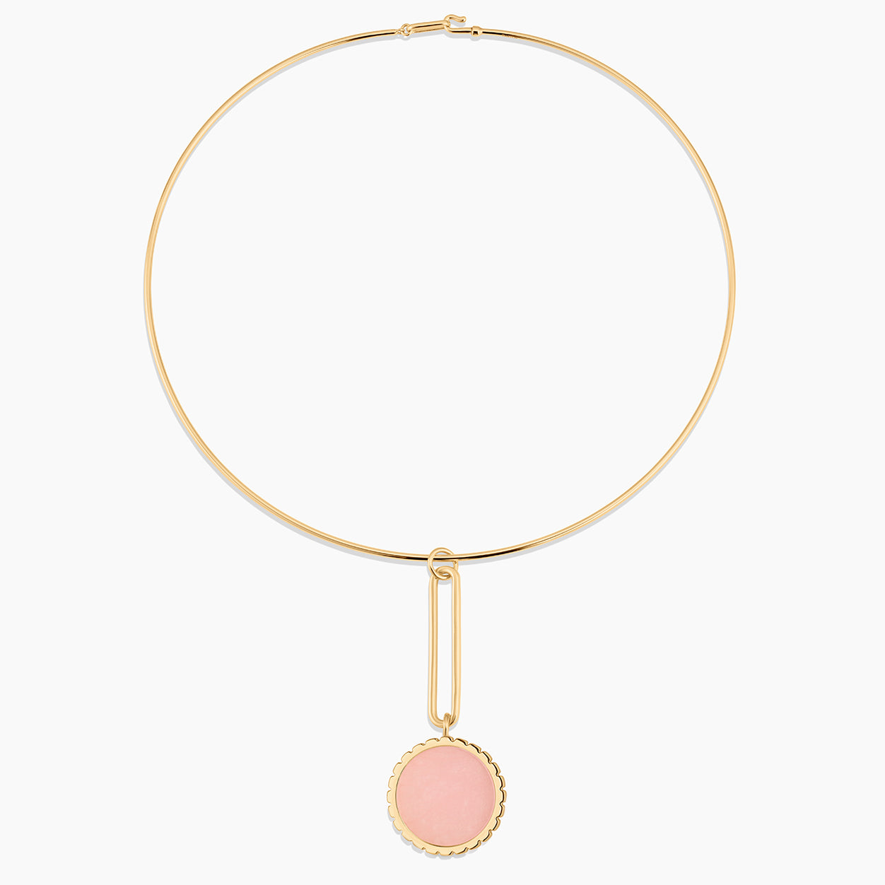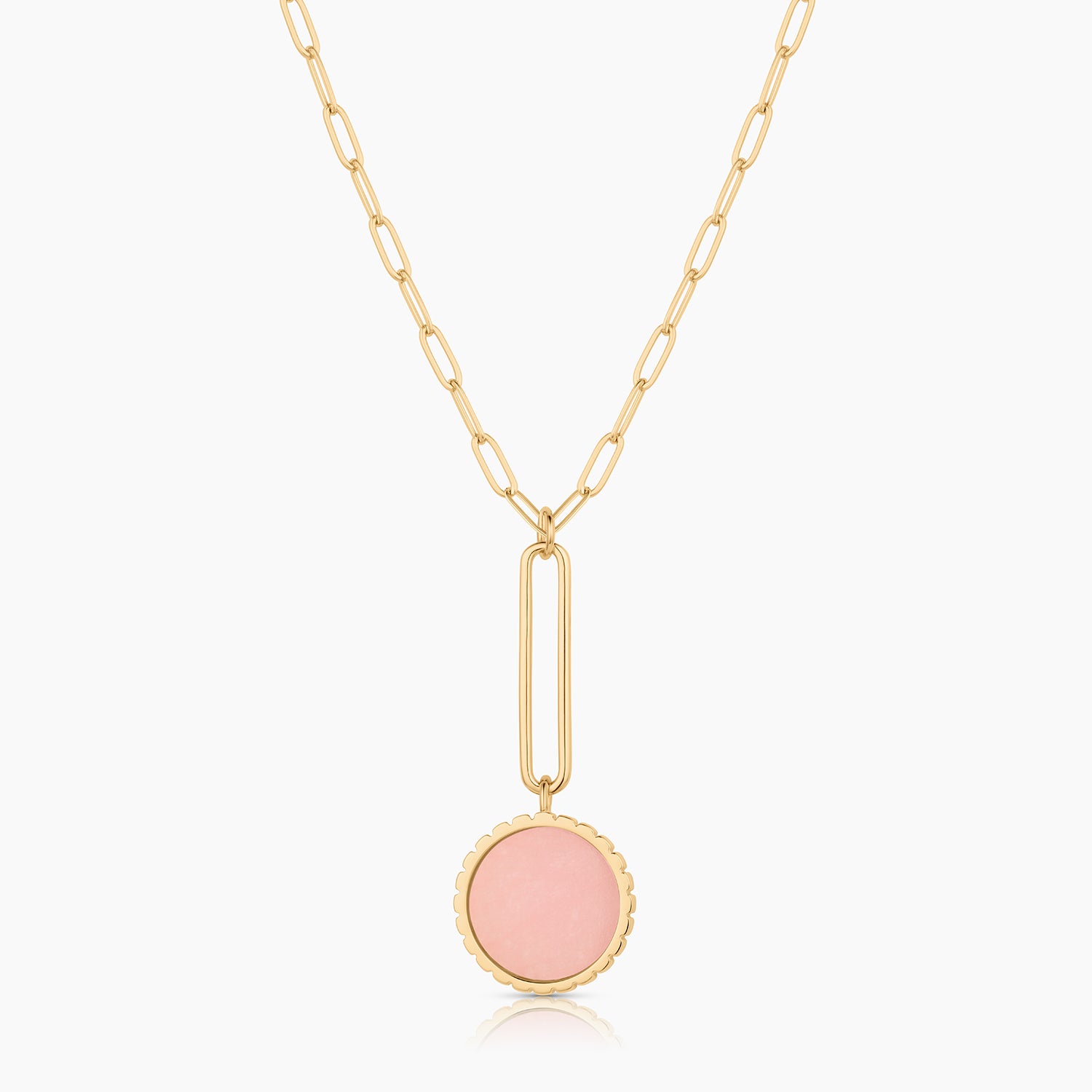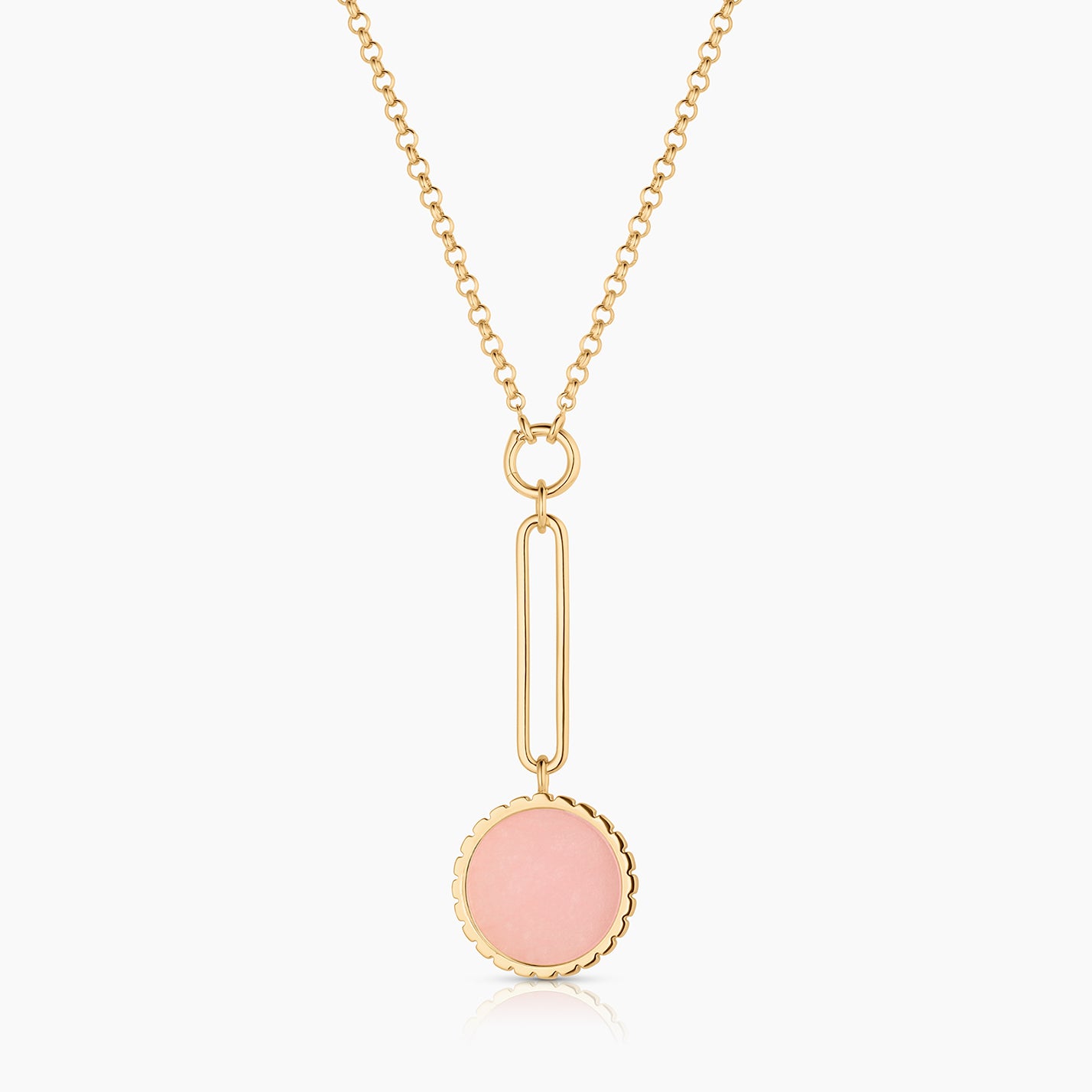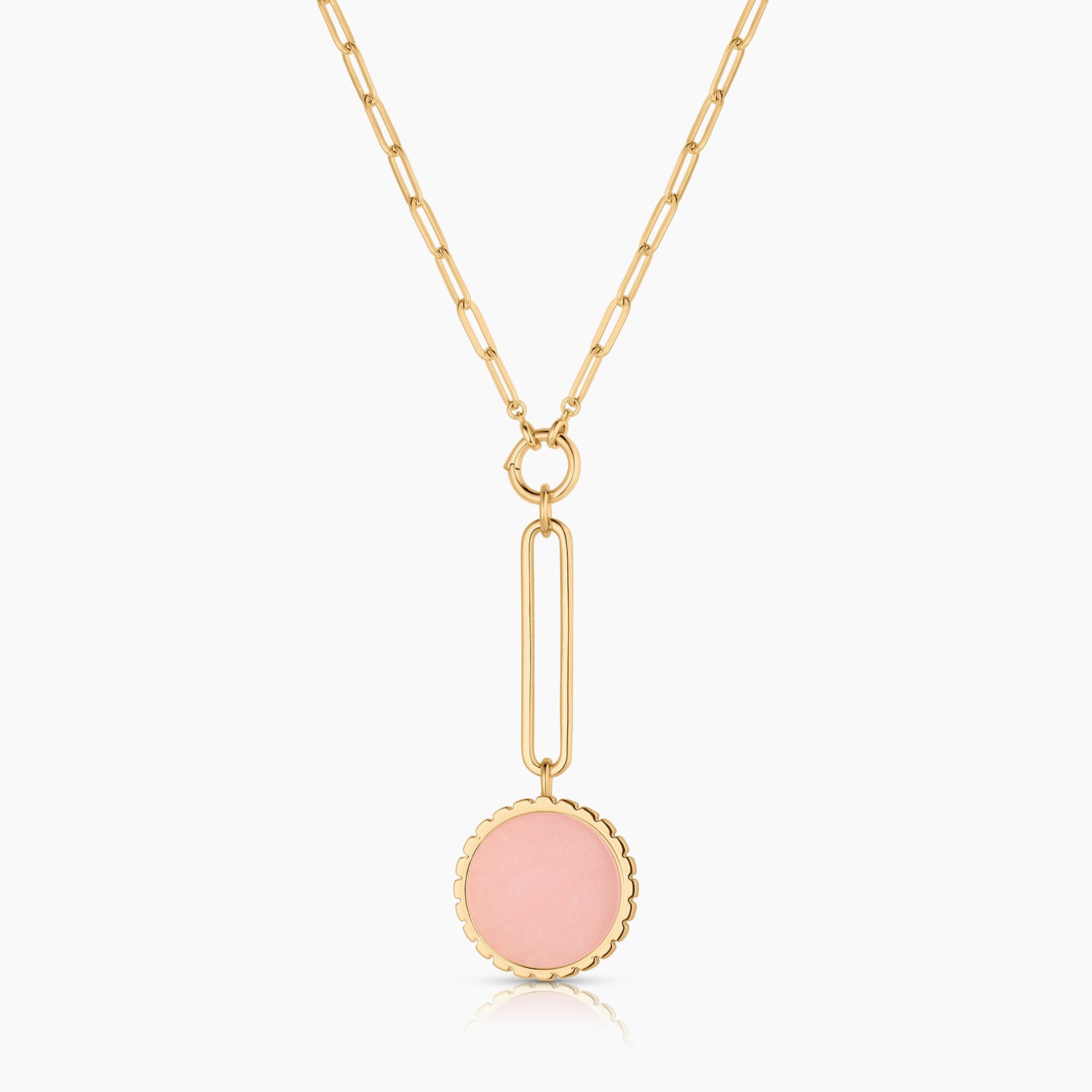 Embrace the beauty of our 100% natural gemstones with this exaggerated and modern drop charm made with hand-carved pink jade. Perfect for extra long chains, deep V-necks, and coastal getaways.