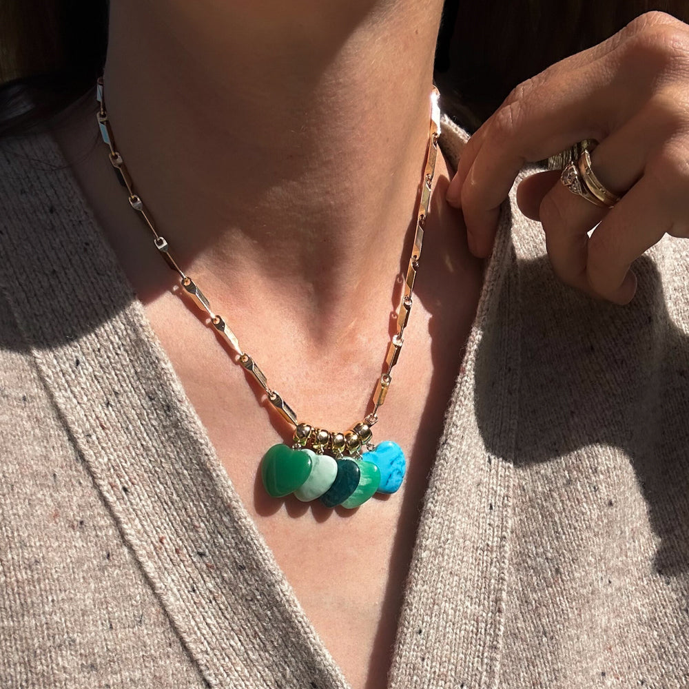 Our newest way to wear the Gemma charm; a hand-carved chrysoprase puffy heart on a rounded bail for total necklace versatility.