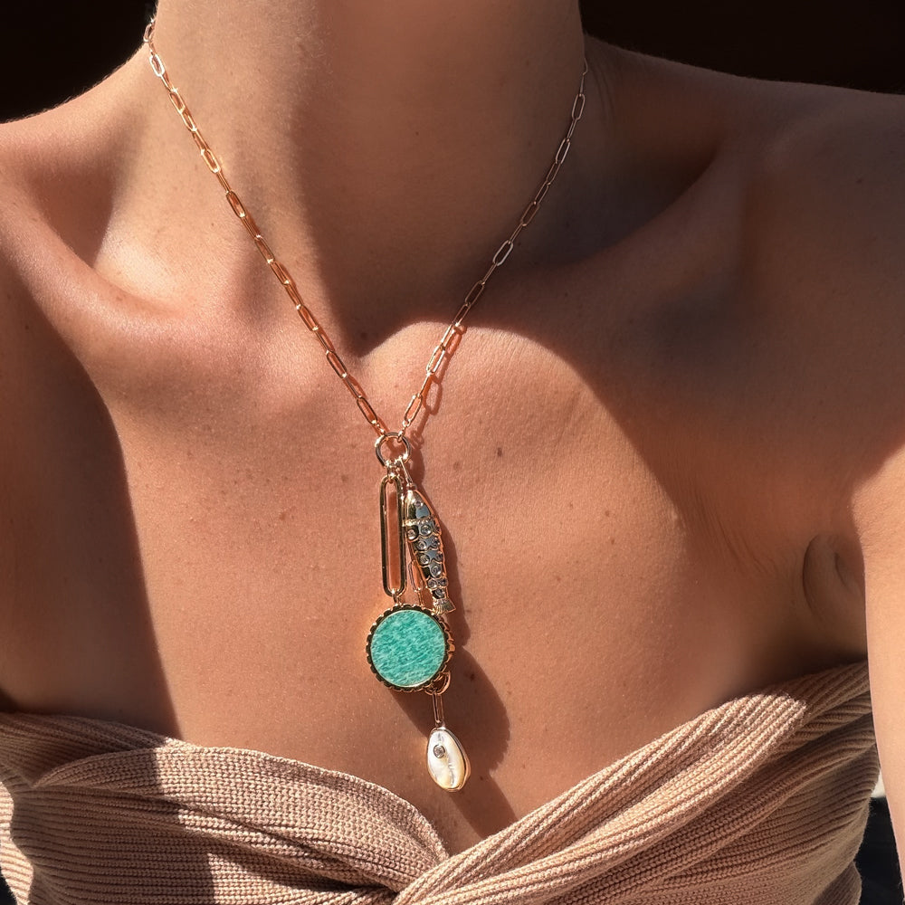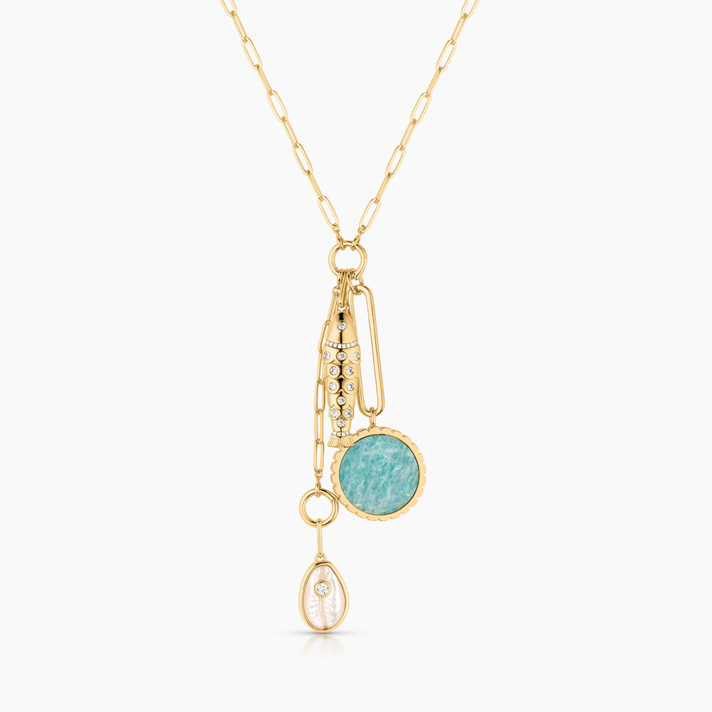 One necklace, endless possibilities. A playful mix of luminous gemstone charms and pavé fish, this necklace offers total versatility with charms that can be rearranged and restyled to suit your mood. An invitation to explore.