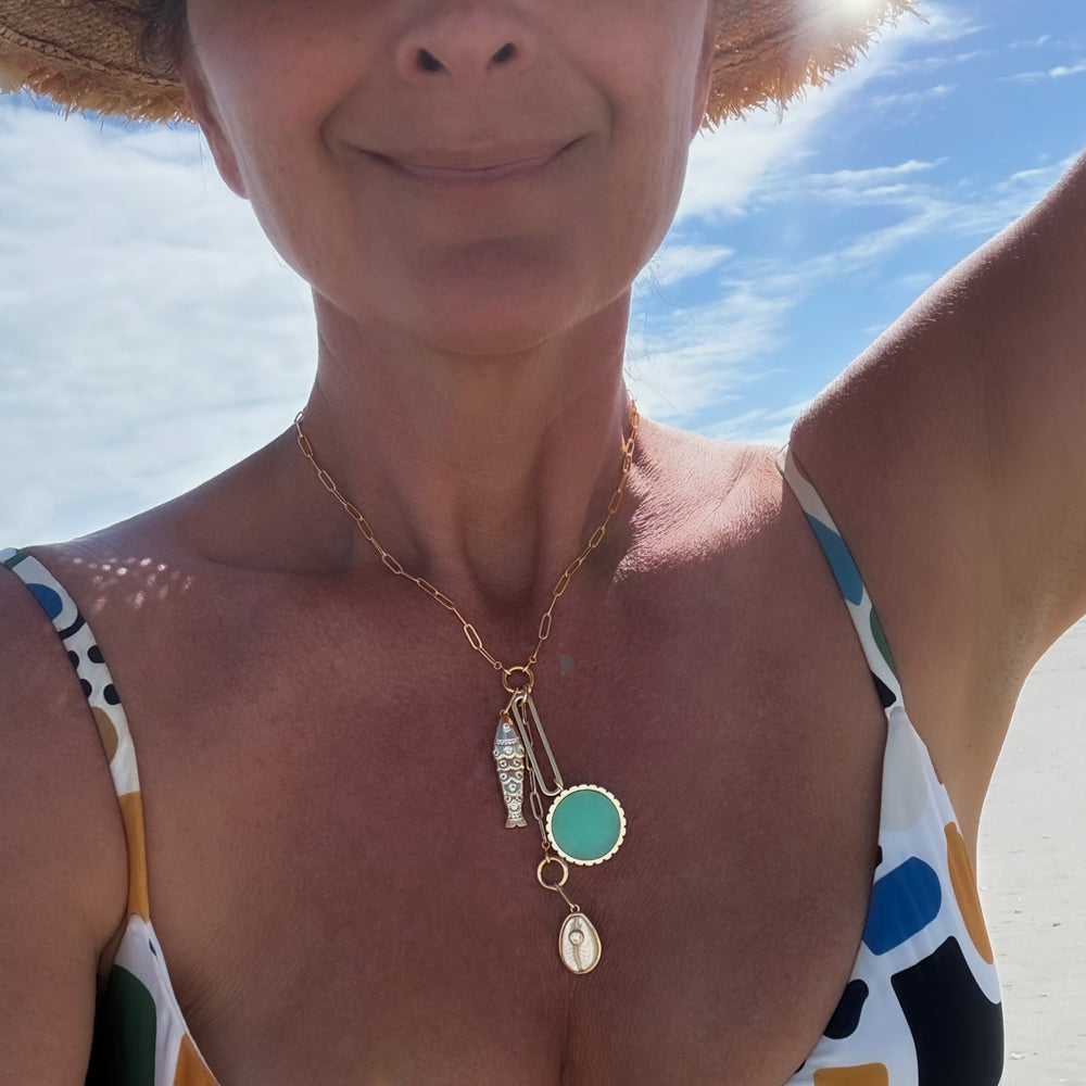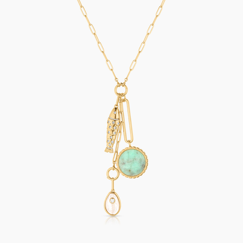 One necklace, endless possibilities. A playful mix of luminous gemstone charms and pavé fish, this necklace offers total versatility with charms that can be rearranged and restyled to suit your mood. An invitation to explore.