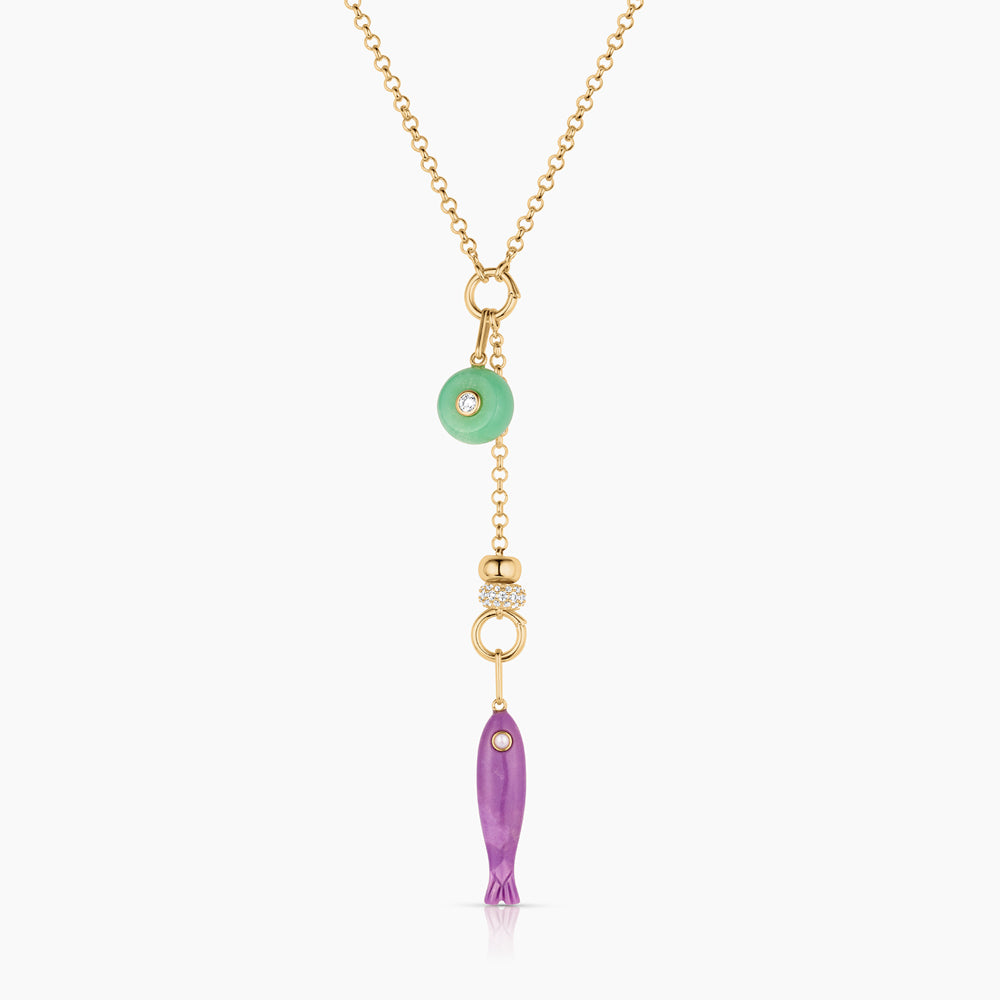 Béla Chrysoprase and Purple Mica Lariat Necklace
