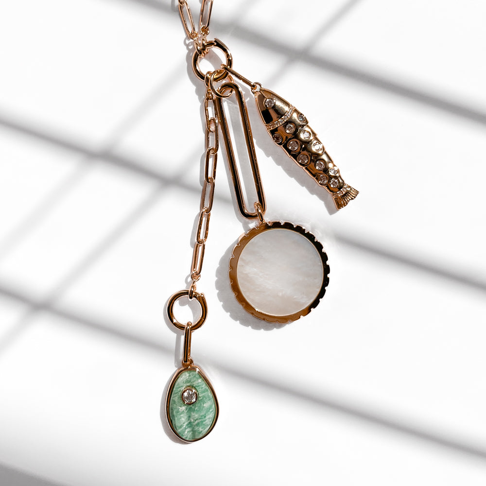 An ode to movement and versatility. Slide this extender onto the charm clasp of your Finn Paperclip Charm Necklace and play with layers of gemstone charms and sparkly beads to create a necklace that is completely your own.