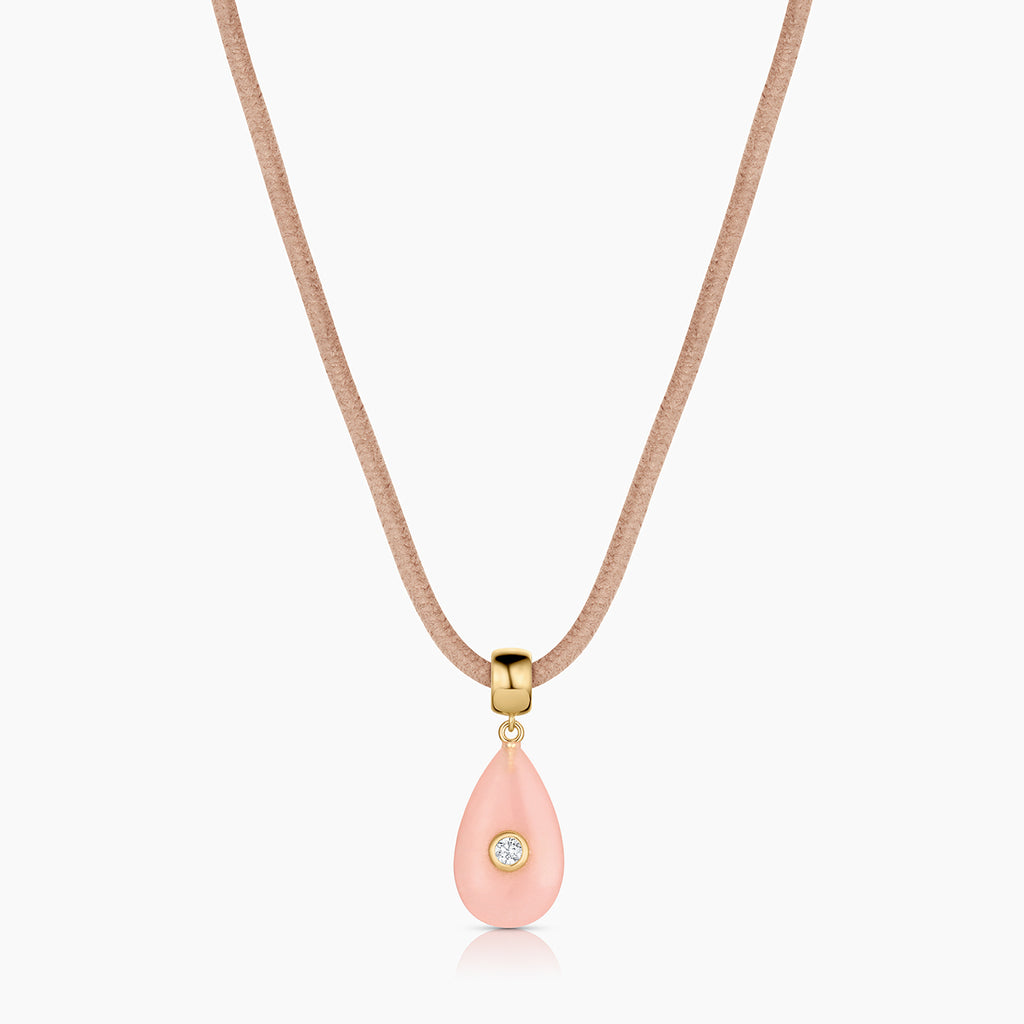 Materials: 14k gold plated, hand-carved pink opal, cubic zirconia