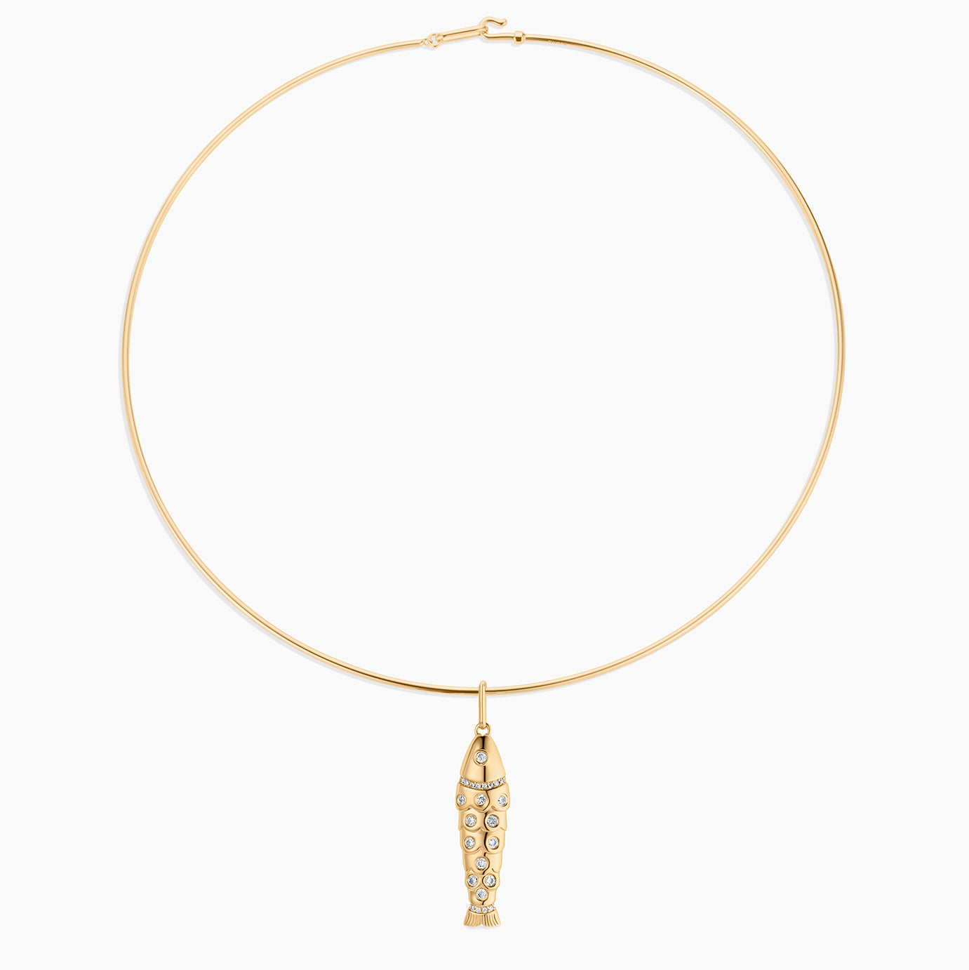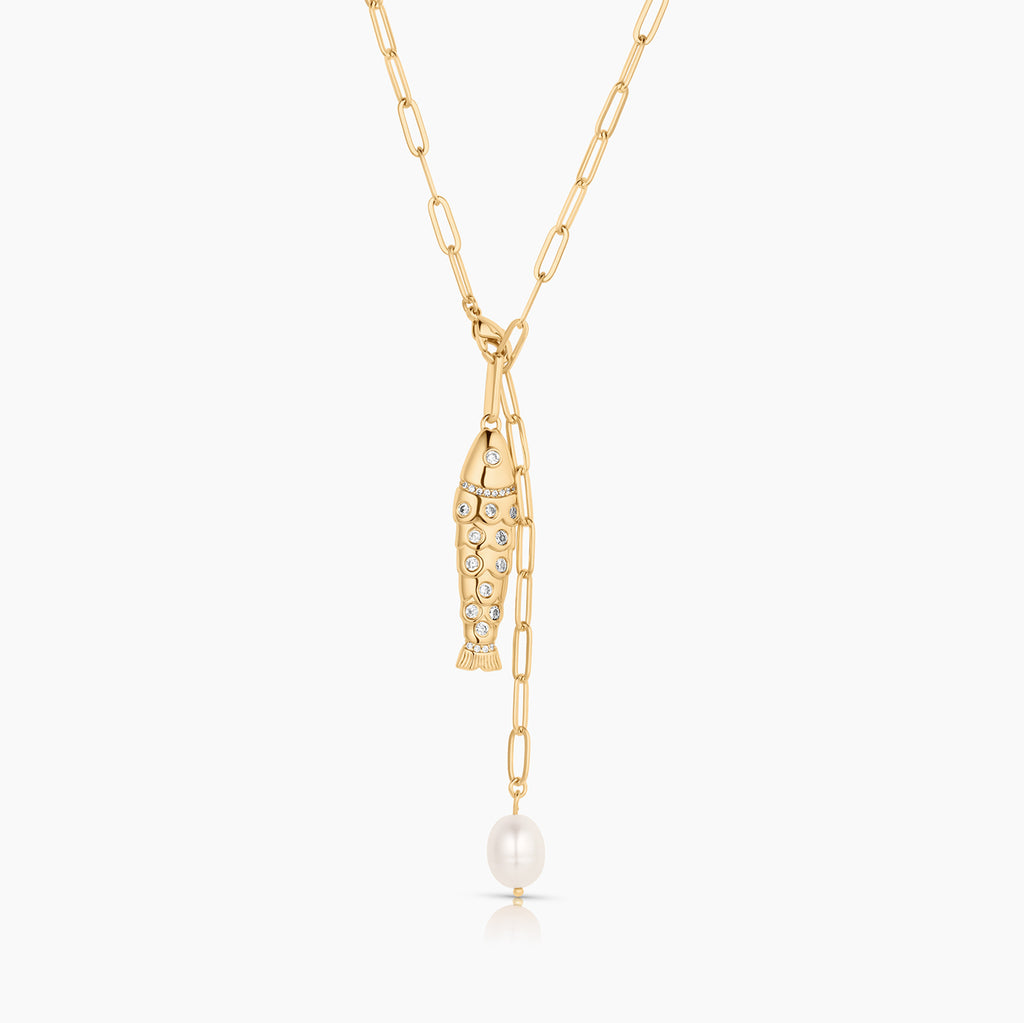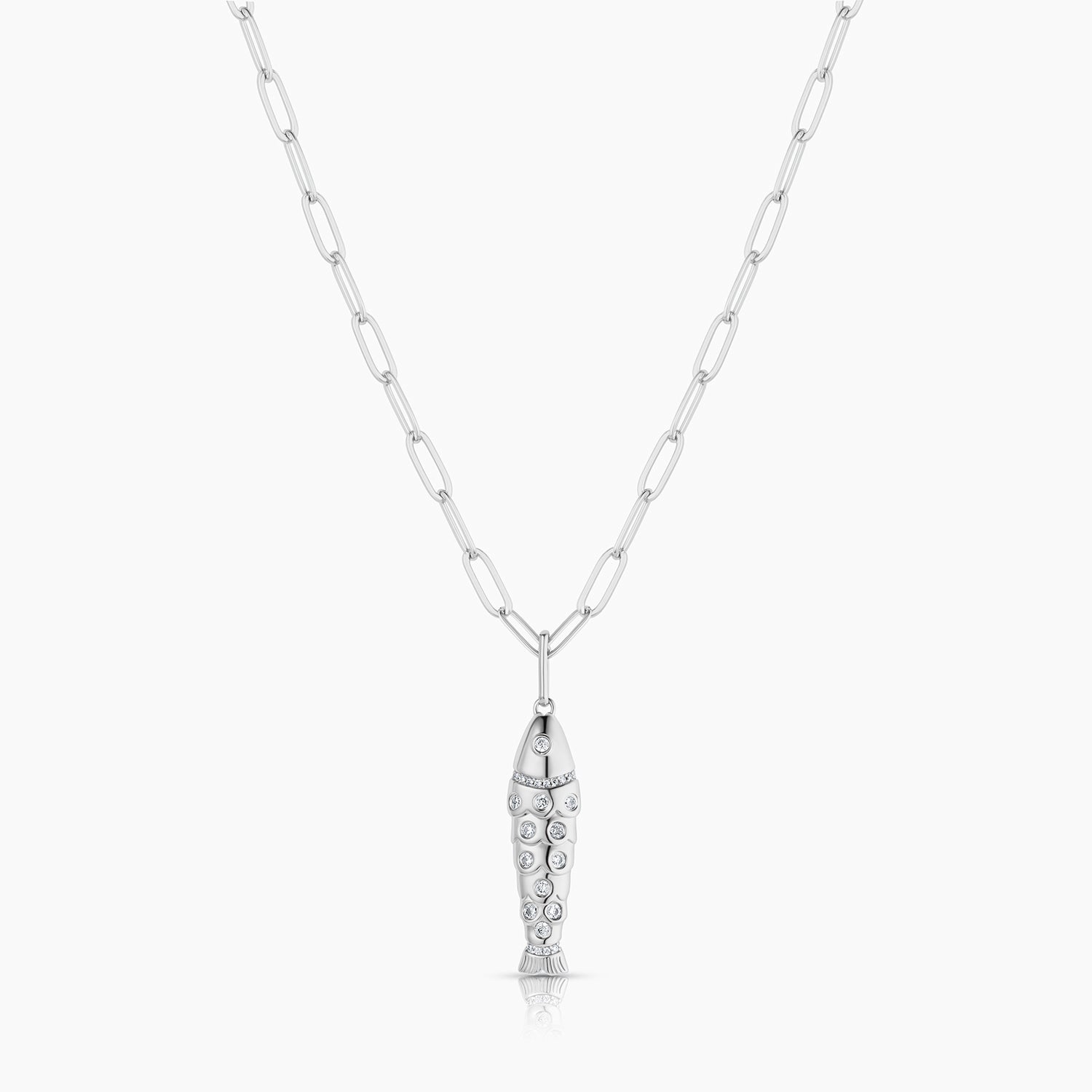 An all-metal fish charm enveloped in glittering scales and fine details. She blends seamlessly into a mix of beads and CZ charms, or layered into a nautical neck stack. Textured, sparkly, and everything you ever dreamed of.