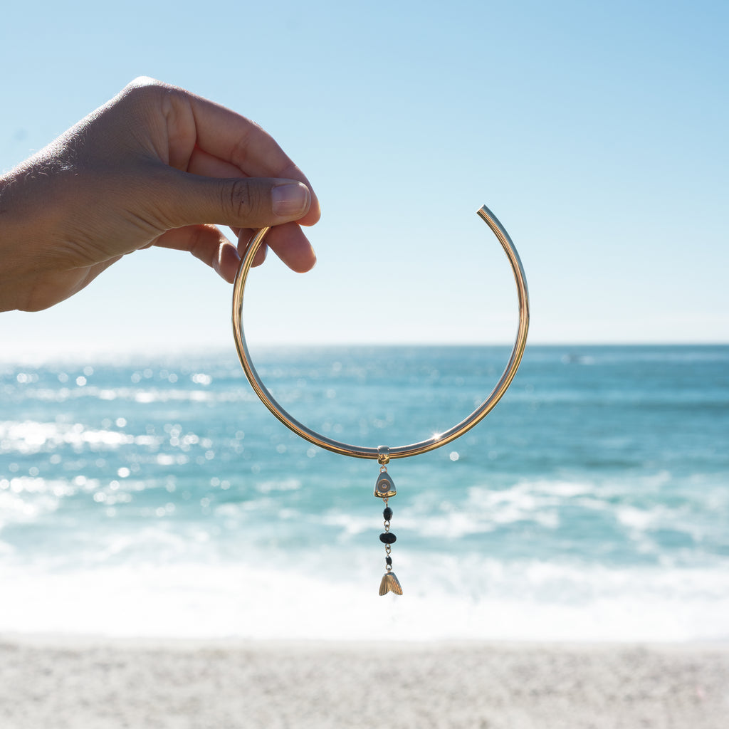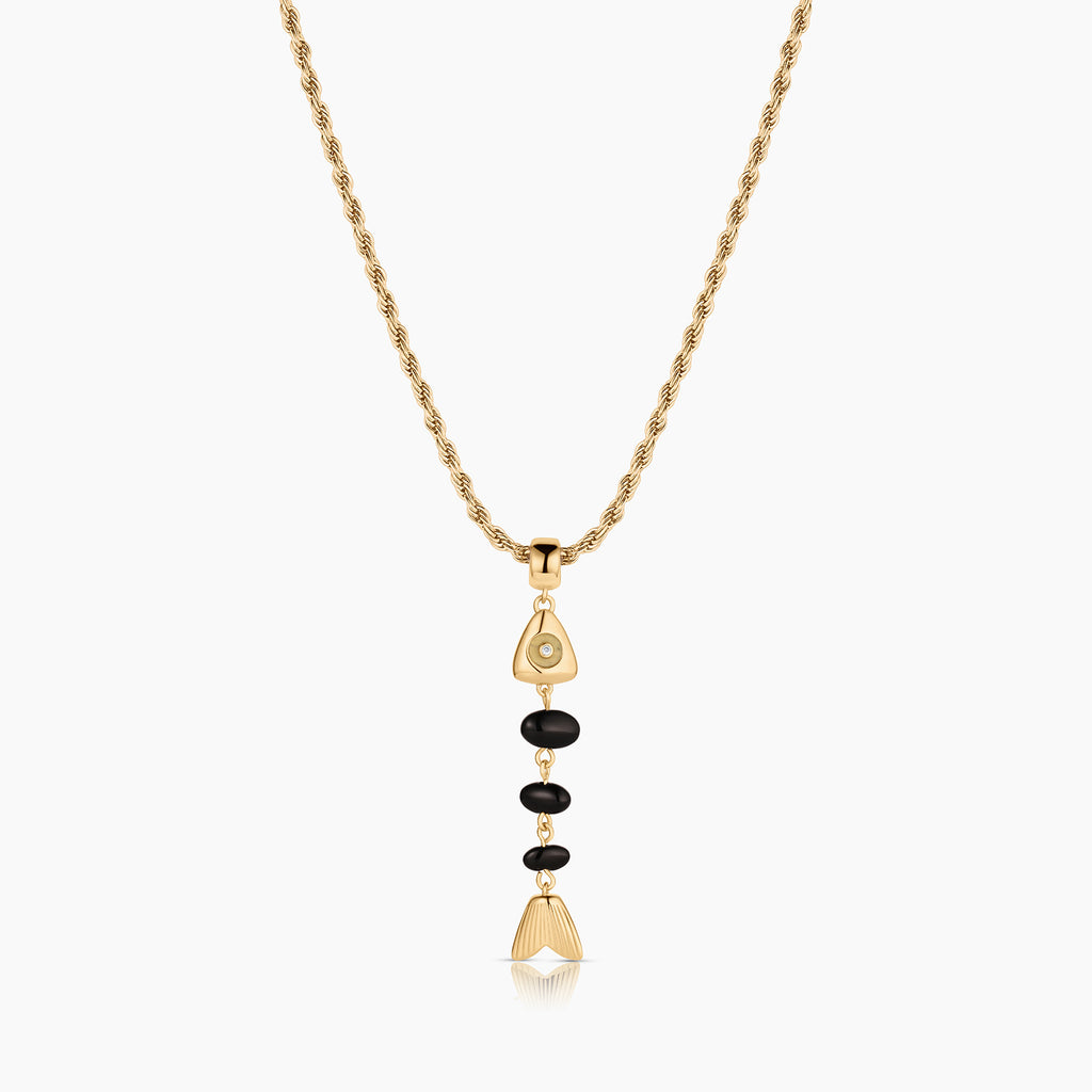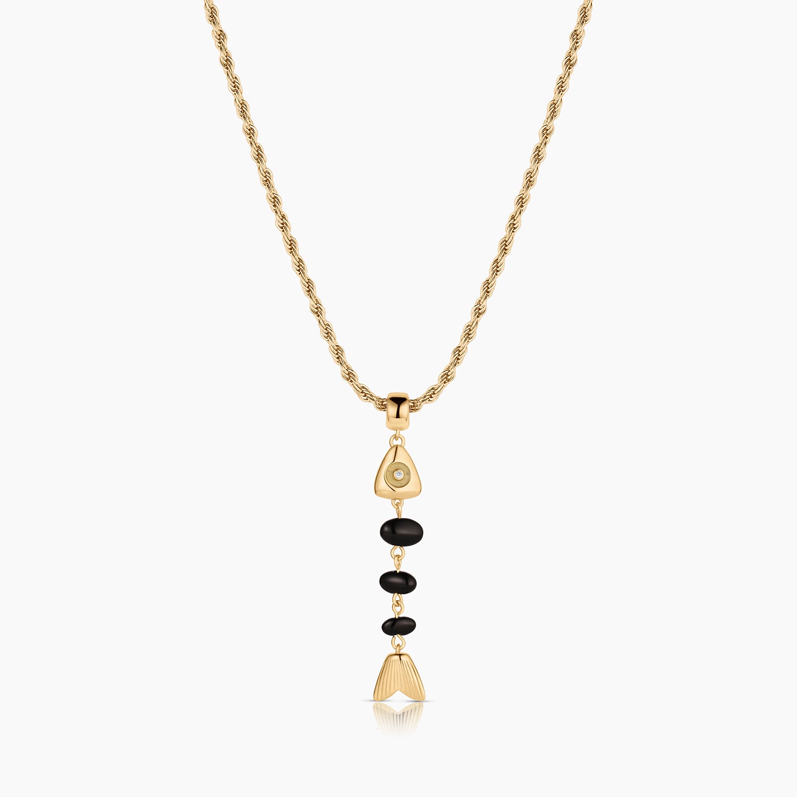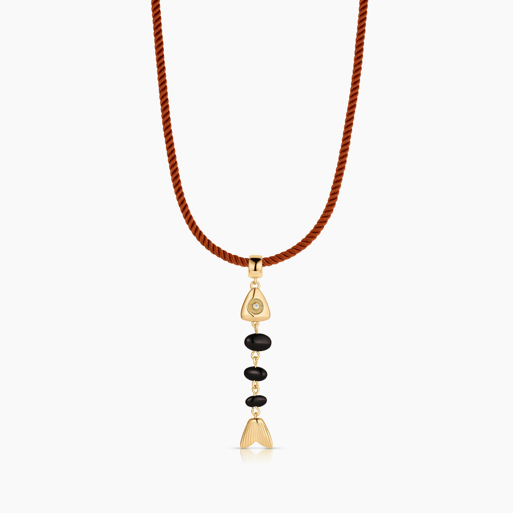 Materials: 14k gold plated, hand-carved onyx with an amazonite eye, cubic zirconia
