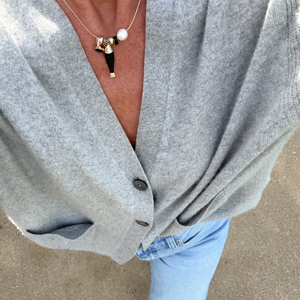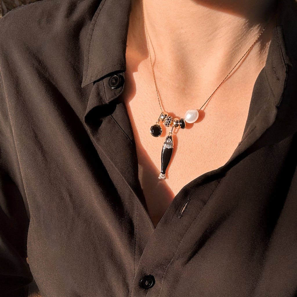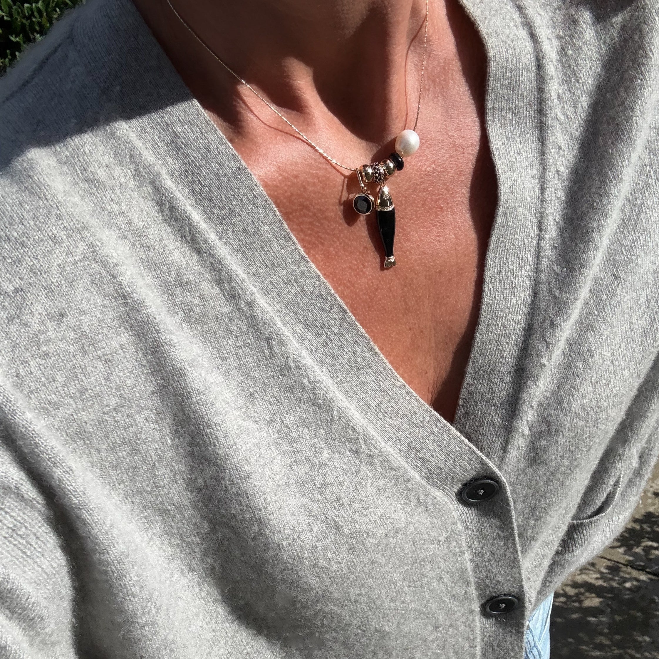 Our favorite charms, designed and ready to go. Add a bit of sparkle and contrast to your neckline with our Marin Soirée necklace. Designed for holiday fêtes, cocktailing and layering. It's all of the best of THATCH — all in one necklace. The perfect gift for the girl who has it all.