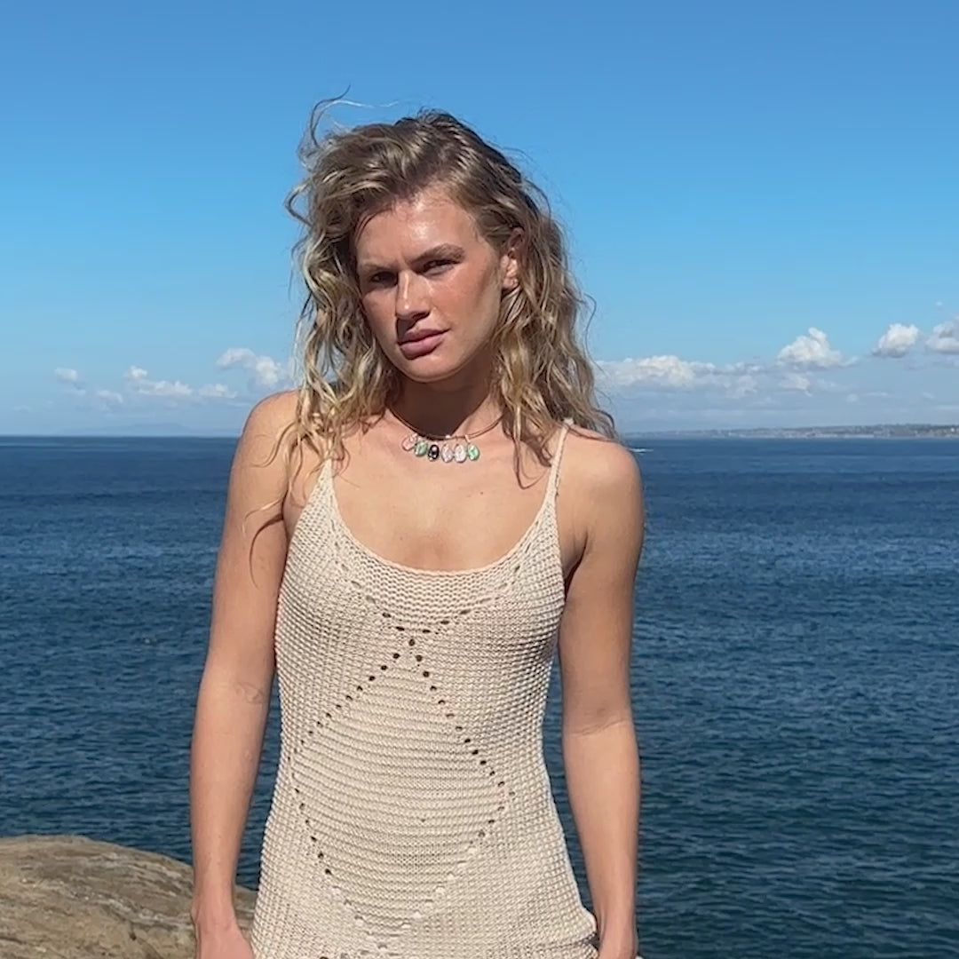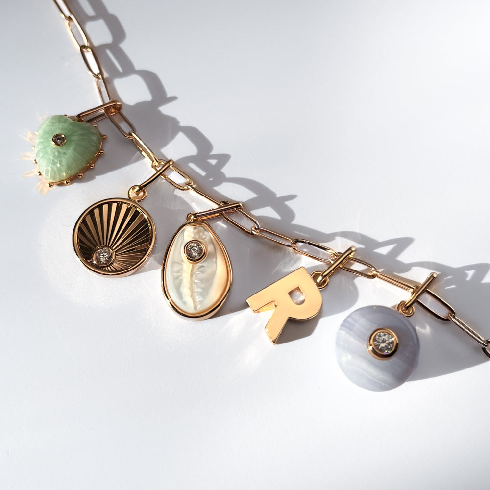 Materials: 14k gold plated, hand-carved mother of pearl, cubic zirconia