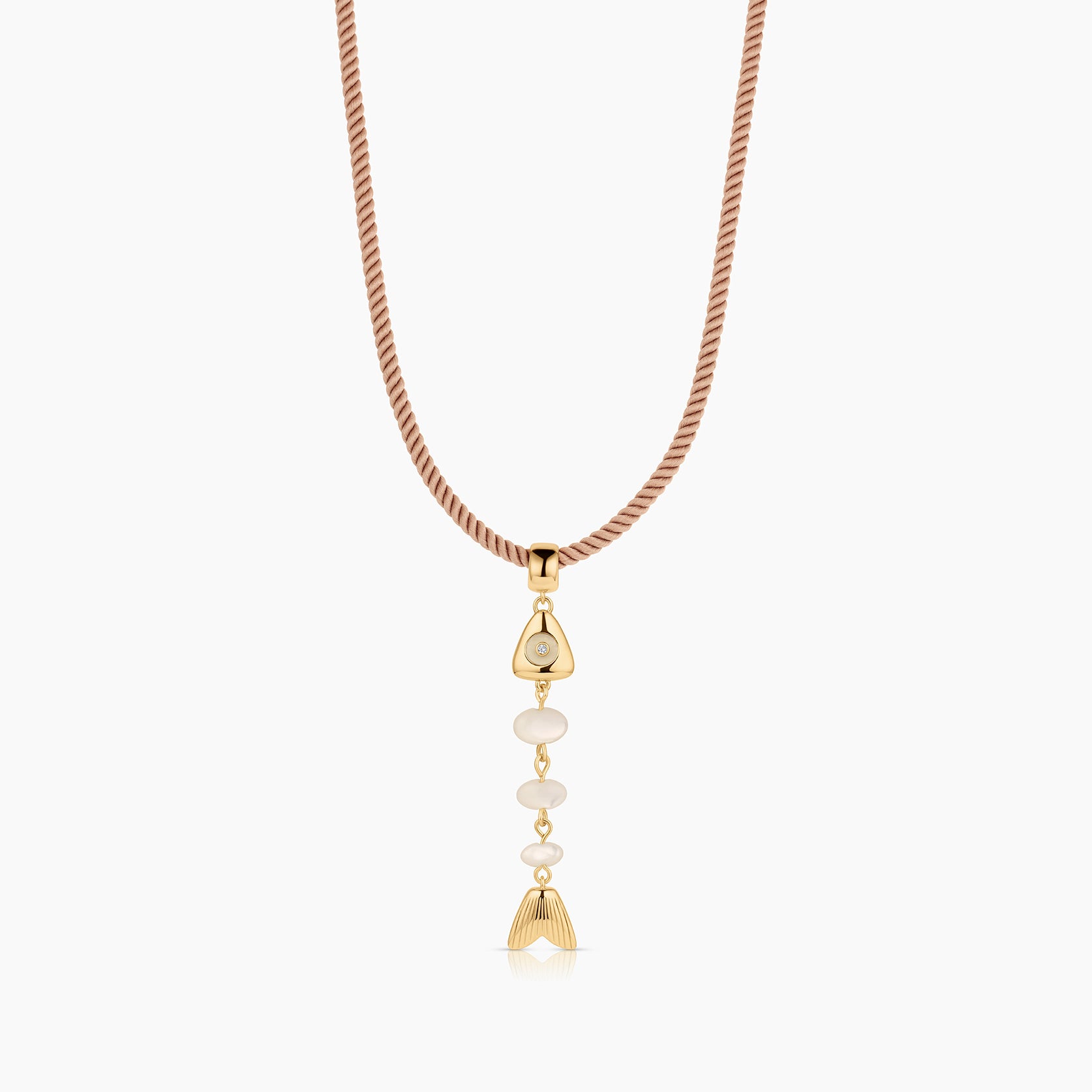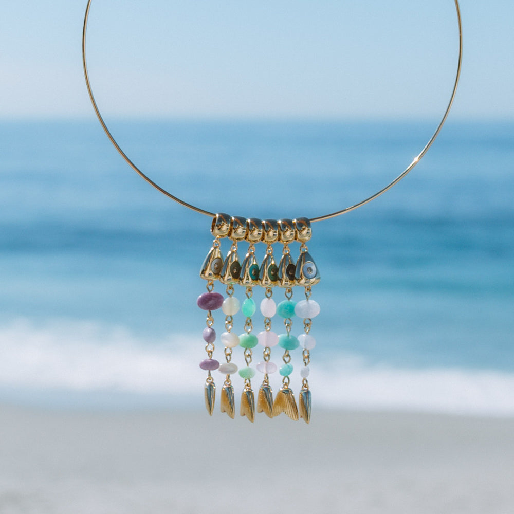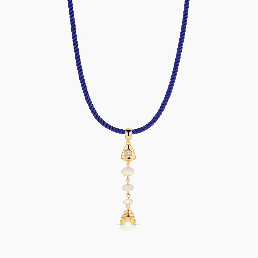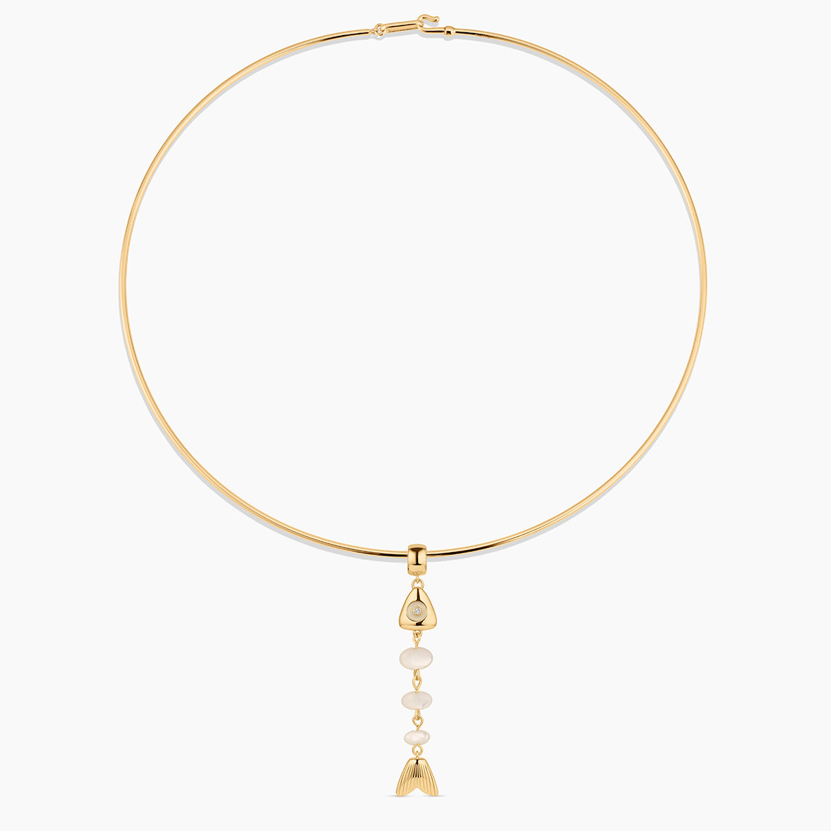 This skeletal fish charm is unlike any you've seen before. A fish bone-inspired silhouette created with hand-carved drop gemstones and a contrasting gemstone eye, complete with CZ sparkle. This delicate beauty adds movement and sparkle, and has become our new favorite treasure from our jewelry box.