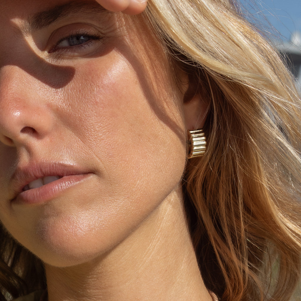 Inspired by the Cierra Bead charm, these round ridged hoops add a little bit of texture and deco shine to your earring collection.