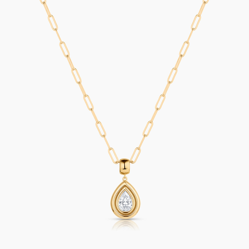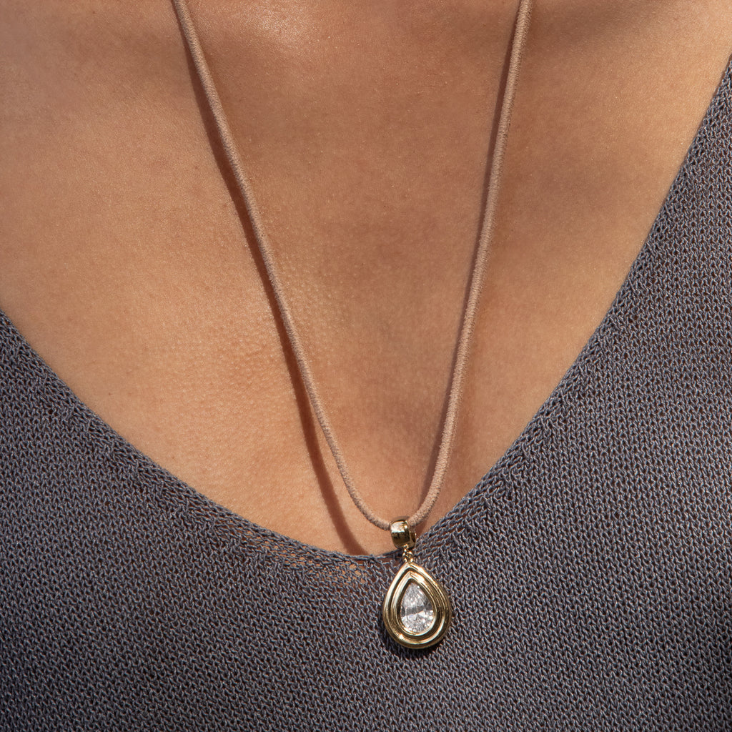 Inspired by our double-ridged Frankie Cuff, this teardrop charm pairs rounded edges with a large dazzling CZ for a look that's full of glimmer and shine.