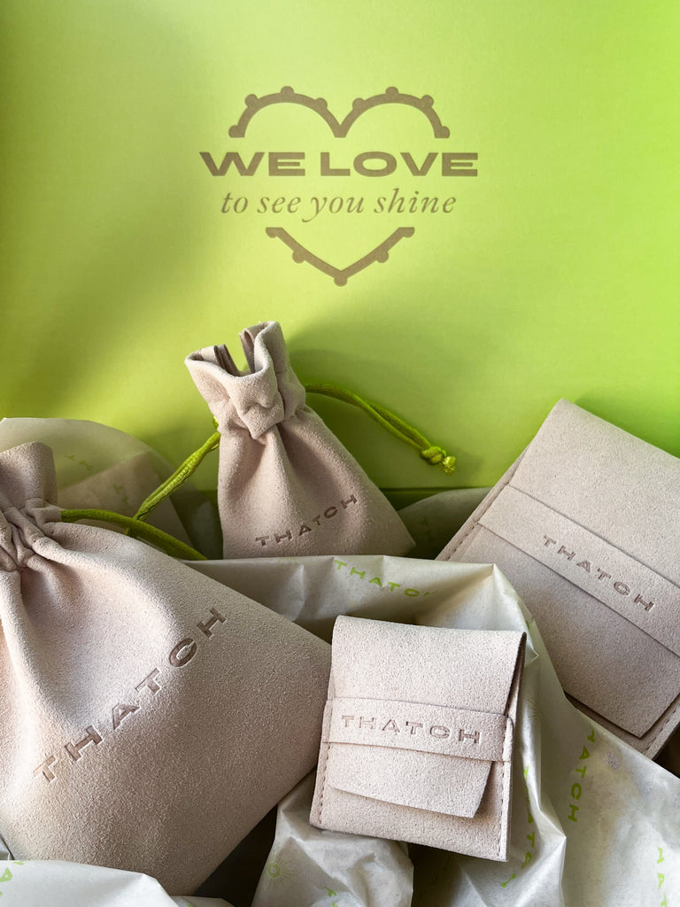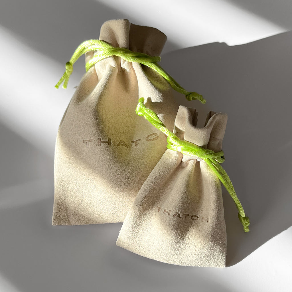 Each piece is packaged in a THATCH signature soft jewelry pouch — Our pouches are specially designed to store and protect your jewelry from scratches and tarnish.