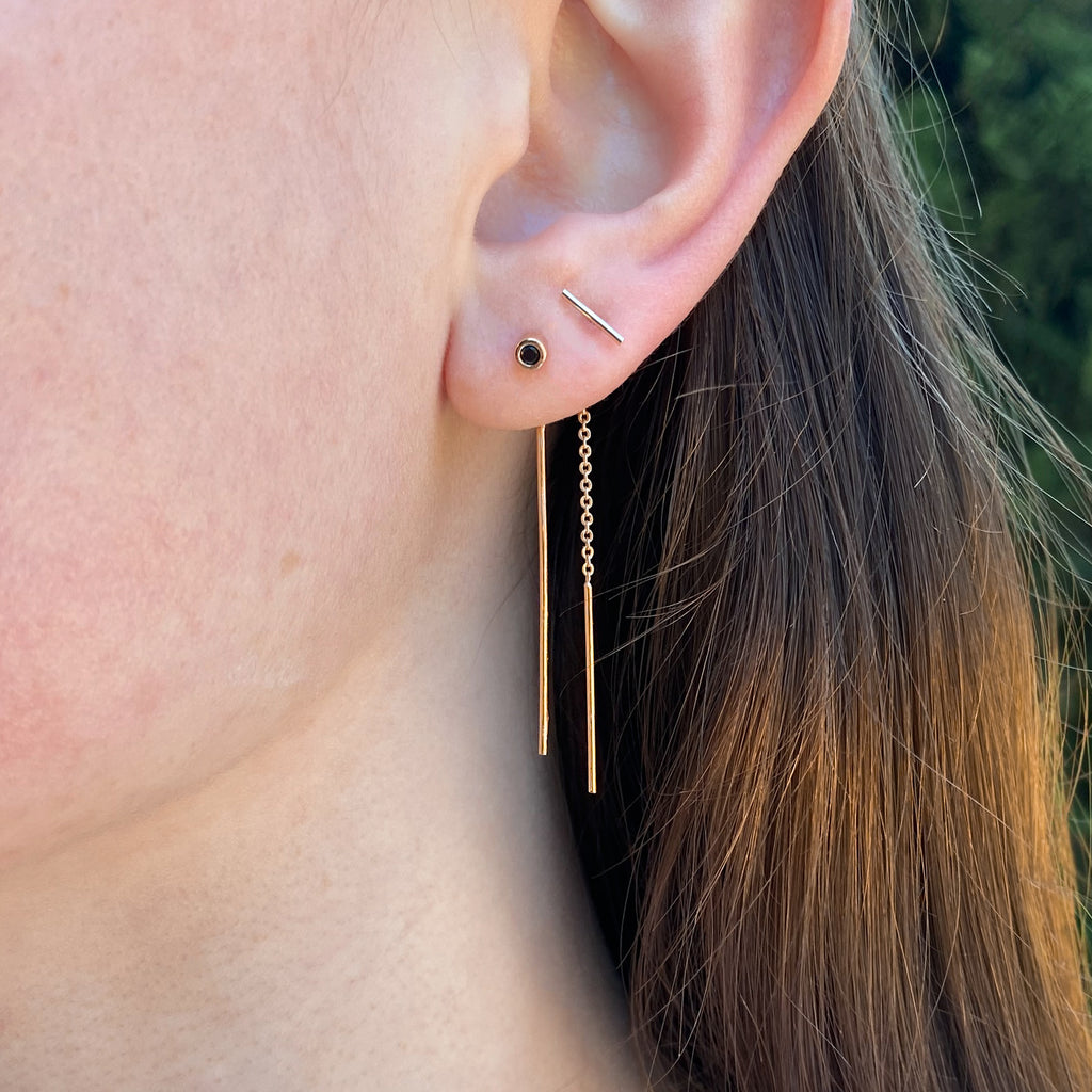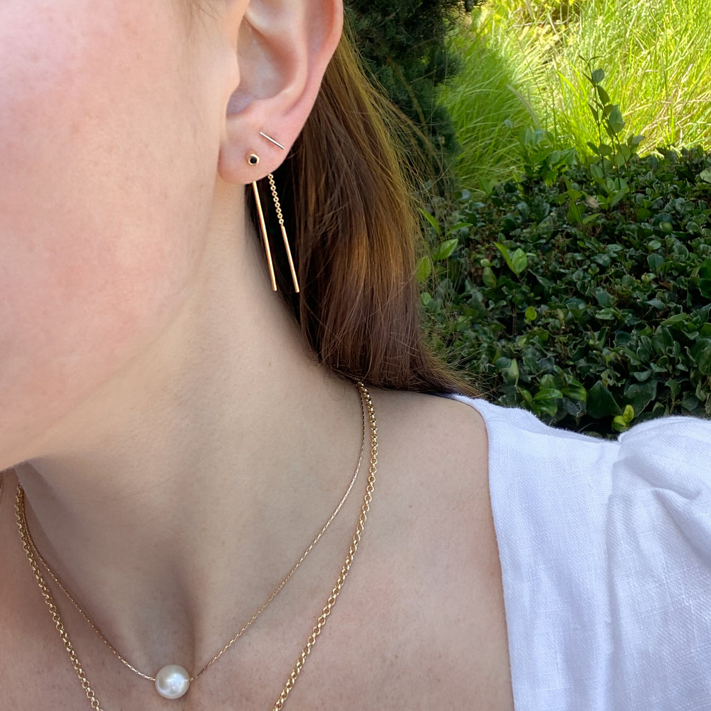 14k 1.2mm gold cable chain threader earrings with 1mm delicate bars.