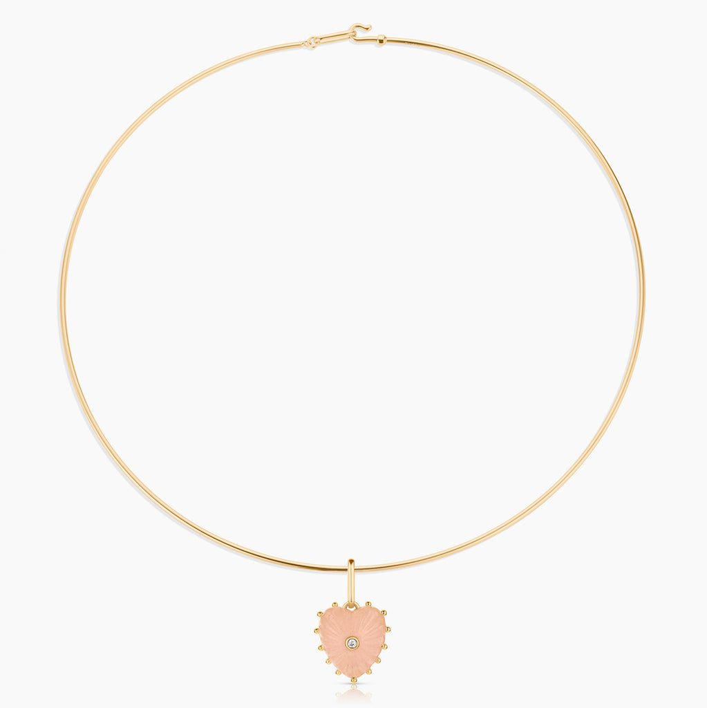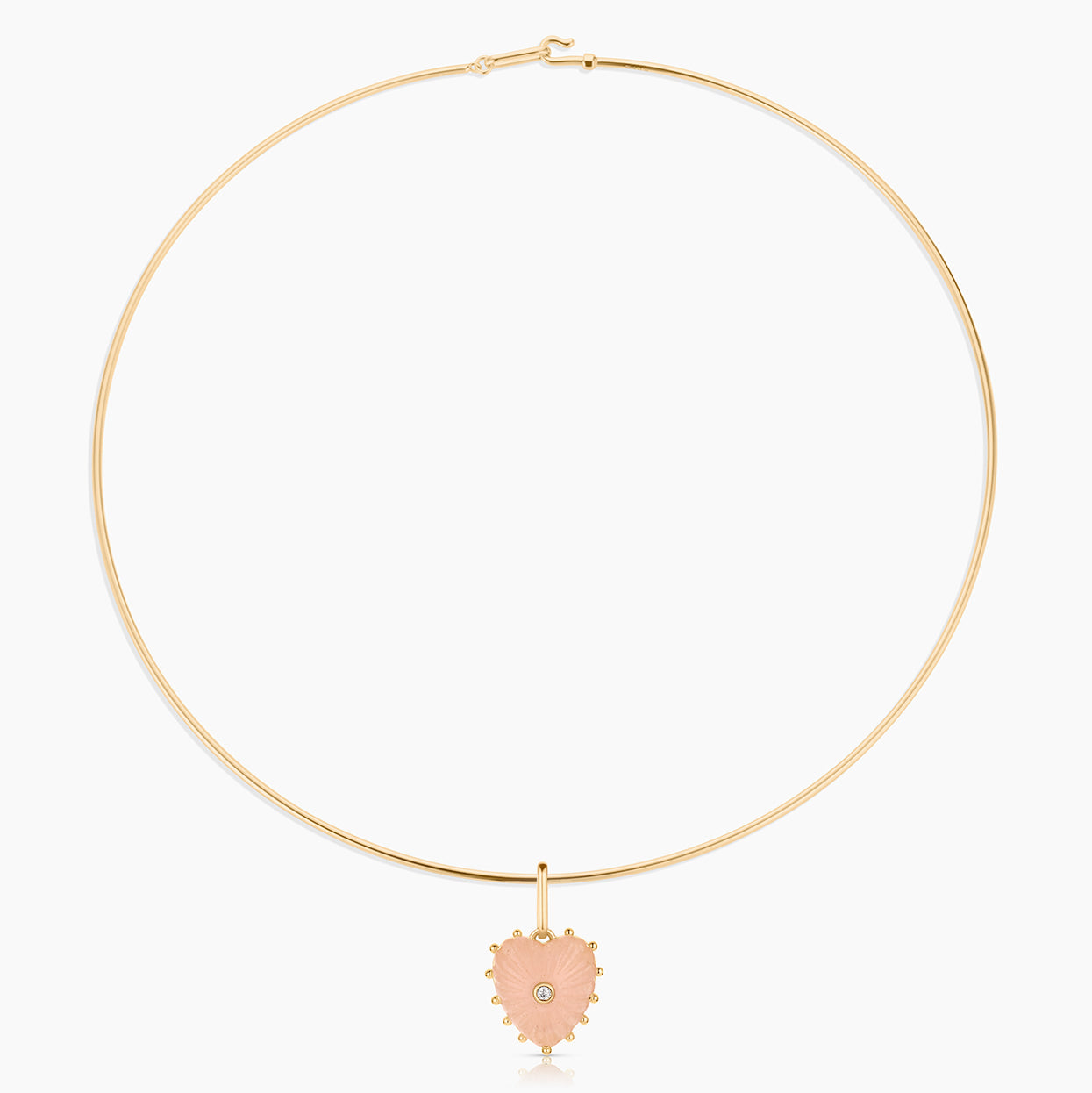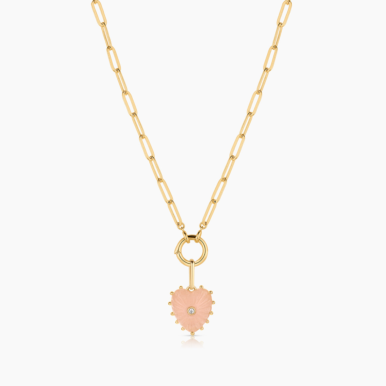 She's Malene's baby sister, a smaller hand-carved pink jade heart charm with a sparkling center stone. A favorite for gifting and layering.